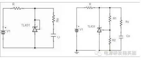 TL431有着较为特殊的动态抗阻,是一种较为精密的可控稳压源,在电路当中,TL431也作为一种并联型的稳压电路来使用,当然使用方法并不局限在这一种,其还能够作为串联或电压基准来使用。TL431的主要作用是使电路获得更加稳定的电压,虽然人们都知道使用TL431,但是并没有几个人对其工作原理进行深入的剖析,本篇文章就将为大家介绍关于TL431工作方式的另一种理解方式。请参阅:更多电源管理、数据转换设计方案。说到TL431的工作方式,很多人想到的必然是TL431+PC817的电源电路。其实任何基于431手册中的稳压电路,都可以有合理的电路模型。而TL431和PC817的反激电源中的TL431,却无法,或很难解释。 图1是TL431的内部原理图首先,这里有一个最最基本的问题。当TL431正常工作在稳压电源中的时候,Cathode的电压是多少?大家想过这个问题吗? 图2对于如图2的TL431常用稳压电路,C的电压是确定的。由电源电压减去电阻电压,就可以得到。因为REF的电压因为负反馈而稳定就使2.5V.但TL431+PC 817中的TL431,却没有明确的Cahode电压! 图3 反激电源中的TL431通过TL431的内部电路,可以看出,Cathode的电压不应该低于2.5V。因为只有Cathode的电压高于2.5V,Q1的这个三极管,才可以工作在放大状态。如果低于2.5V,那么Q1会进入饱和方式,而失去放大作用。不难看出,此时,Q2、Q3、Q4等三极管也会失去放大作用而饱和。三极管饱和的方式,肯定不是TL431的设计者,最初的想法,他的想法,肯定是要让这些三极管工作在放大方式的。C低于2.5V,在反激的431中,不会出现2.5V流向5V的电流,假设反激电压为输出5V.如果REF电压高于C,电流也是从集电极到发射极的流动方向。最好的情况是,3.28K电阻之下的电路工作正常,而可以输出1.5V左右的基准电压。而最好的情况是,假设即使Cathode低于2.5V,431也可以反馈正常工作。对于TL431组成的稳压电源,必须提供431,手册说的1mA的Cathode到Anode的工作电流。但是,在反激电压的TL431中,这根本就不需要!这一点,需要特别注意。因为仅此一点,就彻底否定了LED并联电阻的,毫无意义的做法。对于TL431手册中的稳压电源电路,必须提供1mA电流,才可以正常工作。而反激电源中的TL431,在C到A的电流为0的时候,恰好是UC3842输出最大占空比的时候,这必然产生输出电压,而使得TL431工作。所以,在反激电源中,根本不需要关心TL431的电流问题,特别是启动的时候。这是必然会产生的。试想,UC3842的反激电源启动了,此时,没有输出电压。TL431也没有电流,不工作。但UC3842因为其中的运放会输出最大的1mA电流,流向了1V稳压管并联的电阻,而导致设定的占空比最大,而输出电压逐步上升。 随着5V电压的逐渐增大,TL431的C和A之间如果不导通,那么其CA电压会5V左右,这会与TL431的输出电压电流IV曲线出现矛盾,所以TL431必定会在CA间产生电流。而5V的分压电阻,在REF 产生2.5V左右电压,导致TL431正常工作。LED电流对应一定的输入电压和负载电阻。就是说,如果输入电压固定,负载一定,那么就会有与之一一对应的TL431的C到A的电流,就是LED电流。如果两者,有一个或2个都改变,那么LED电流,必然改变。所以,最大的输入电压,和最小的负载电阻,对应最小的LED电流,可以是0。最小的输入电压,最大的负载电阻,对应最大的LED电流。几个mA.请注意,无论如何,TL431在CA电流为0,就是LED电流为0的时候,是无法工作的。但此时UC3842输出最大占空比,而导致,TL431会逐渐开始工作。就是说,反激电源中的TL431,C到A的电流是可以为0的,而这对应最大的占空比。我们的目的,是让UC3842产生连续可调的占空比,对于TL431是否工作,这不重要!但只要产生足够的输出电压,TL431必定负反馈正常工作。但因为UC3842的电流变化只有1mA,如果TL431的LED电流变化达到10mA,那么9mA的调节死区,会给输出电压,带来振荡。所以,这就是我们需要串联Rled这个电阻的唯一原因。这个电阻,无法用频率补偿的那套方法分析计算。到目前为止,只能定性理解。至少,因为TL431一旦没有电流,就不可能有电路模型高频的!这个Rled电阻,对于输出电压的动态过程产生影响。越大越好,因为LED电流变化就小了,比如说,变成了5mA的变化范围,就比10mA的9mA死区,输出电压电振荡小不少。一般来说2mA足以了。但确实是不好计算。因为我们不知道,2mA的LED电流,TL431的cahoce电压为多少。所以就没有办法来计算Rled这个电阻的大小。假如认为TL431的C电压必须不低于2.5V,那么,这依然不符合实际情况。因为最大UC3842输出占空比时候,TL431的电流就可以为0的。但还是假设这么算,C不低于2.5V的话,就按2.5V来算。Rled=(5-1.5-2.5)V/2mA=500欧姆。