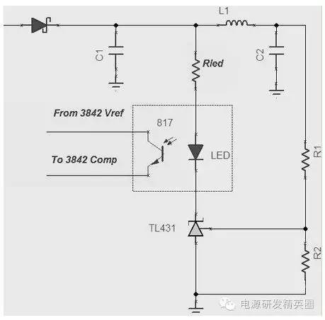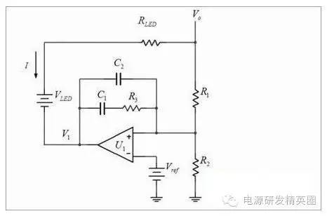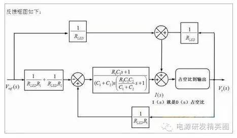 图4对于TL431的设计理念,不管其设计者,最初是否如下图所示,图4的原理与TL431是完全一样的。因此,TL431+PC817的确是个,到目前为止,使用众多的电路。最好的,最合乎情理的,方法就是用运放,用TL431提供电压基准的方式,比如那个着名的使用LM258的输出有2个二极管的恒压恒流电路。因为这个电路是可以用正常的理论方法,进行分析和计算的。而TL431+PC817,是无法计算的!敢算的是概念错误!是的,我们可以说,TL431+PC817是正确的电路,因为的确可以正常工作,只是因为TL431的工作方式问题,会对于动态过程,产生振荡,或其他不可思议的问题。因为这不是一个,目前的理论,能够解释和分析计算的。使用运放的反激电路,基本都是可以用现有理解分析计算的,所以问题不大。这就是两种方式的主要区别。使用TL431+PC817的唯一原因就是成本问题。但从负反馈的原理来说,是正确的,但过度的动态过程,不好说。再明确一点就是,TL431可以工作在非正常方式,而产生负反馈作用。就是说,C的电压低于2.5V,依然可能可以有正常的负反馈作用。而要计算的话,就要假设,TL431,只能工作在C不低于2.5V的情况下。因为UC3842输出最大占空比时,TL431的电流可能为0.1mA,而0.1mA不足以使TL431 正常工作,但在整个电路的调节过程中,TL431不正常工作,依然在现实中,调节了输出电压,而让人们觉得这没有问题。如果非要定量计算,也是要把TL431当作跨导放大。传递函数是gm*A/(Ts+1)的形式。而此时,与电阻Rled无关!这是需要特别注意的。Rled就是限制电流的作用,但我们却无法计算这个电阻。但设置一个Rled电阻值,就可以知道最大不可能超过的电流,毕竟我们也不希望TL431,因为没有电阻限流,而流过100mA电流。Rled能否对调节产生作用?定性来说可以,越小,虽然可能振荡的情况增大,但毕竟调节还是比较快的。Rled大,那么调节速度就可能变慢,但振荡小。那么,为何假设TL431正常工作的,跨导模型,无法证明Rled的作用呢?因为理想的小信号模型,在现实中,是不存在的!这是一个无法小信号化的,严重的非线性电路。如果TL431无法小信号化,那么所谓的II型补偿,从何谈起呢?如果全面测试的结果,表明,TL 431+PC817的反激电源正常工作,看来我们也只能相信了。这些根本毫无道理的补偿方法,居然真的起作用了。当然了gm是随LED电流变化而变化的,LED电流越大,那么gm也越大,开环的增益也越大,故LED电阻越小,穿越频率越大,就反应越快。终于对上号了! 呵呵那么,gm*A/Ts+1的模型就可以用了,但人们貌似还都不是这么用的。因为不说gm很难得到,就是A和T也是不知道的。好在,人们用的是PID等补偿方法,可以把运放或TL431看作理想的。PID之类的确是个好主意。要是换上7805类的补偿,还真没办法!积分真的太有用了,不是为了消除静态误差,而是可以把运放当作理想的。为了证明431的电流控制方式,II型补偿依然有效,进行了如下推导计算。 图5![]() 图6因为Vref上电后就是稳定的了,所以被Rled*(R1+R2)除以后,很小,视为0。得到框图如下: 图7这依然是个复杂的反馈。还不是那种单环路的反馈框图形式。无法用现有的频率补偿方法。这是需要了解的。但是,如果把Vo/Rled视为扰动的话,那么就可以变成如下的标准形式了。而且,这个假设,视为输出电压缩小Rled倍后为扰动,很是合理。 图8于是乎,基于上述假设,我们得到了,一个单回路反馈的标准形式。也就说明了,II型补偿,对于TL431型反馈电路来说,补偿可以看作有效。费这么大劲才能证明这么一个看似无需考虑的问题,这是人们把TL431视为电压型运放的错误的思想导致。为了证明II在反激中有效,恐怕还是需要向本大师一样,如此推导计算的。然而这依然是个复杂的反馈,比电压型运放的反馈,复杂。电压型反馈,只有一个标准的反馈回路,开环传递函数,一目了然。而这个电流的复杂多了。如果不是把Vo/Rled视为扰动,我们几乎很难用通常的补偿方法补偿。最后,需要指出的是,只有教科书中开关电源电路,才是唯一符合补偿方法的。例如PID,II型等补偿方法。对于TL431+PC817的反激电源,并不适合。所以,书本里的电路,符合控制原理的方法。主要还是单回路控制。一目了然。几乎为降低成本的设计,例如TL431+PC817,用通常的方法,是无法分析的。必须做出一些假设才行!这个道理,是使用TL431+PC817进行II补差的人,所不知道的!电子电路中有很多不符合控制理念的反馈电路。这个就是其中第一个。电流和电压的所谓ACM控制,也是不符合控制原理的,所谓的貌似可以在电子电路里多数情况工作良好的电路。只能说,反激电源,如果理解成双环反馈,还是可以行的通的。条件是输出电容足够大,在几个开关周期,不会造成输出电容电压的较大变化。这样就可以理解为串级控制。TL431 其实就是带基准的比较器(高增益),与PC817一起使用解释不是什么难事。难事就是怎么样让比较器输出为线变化(这就扯到了补偿)。PC817实际就是一个隔离的线性放大器。本篇文章从一个全新的角度对TL431的工作原理进行非常详细的分析,不管文中的观点是否正确,它的确为人们提供了另一种思路,从侧面帮助大家多进行思考,从不同的角度来观察问题。 |