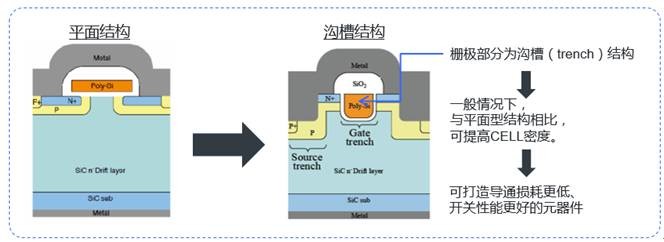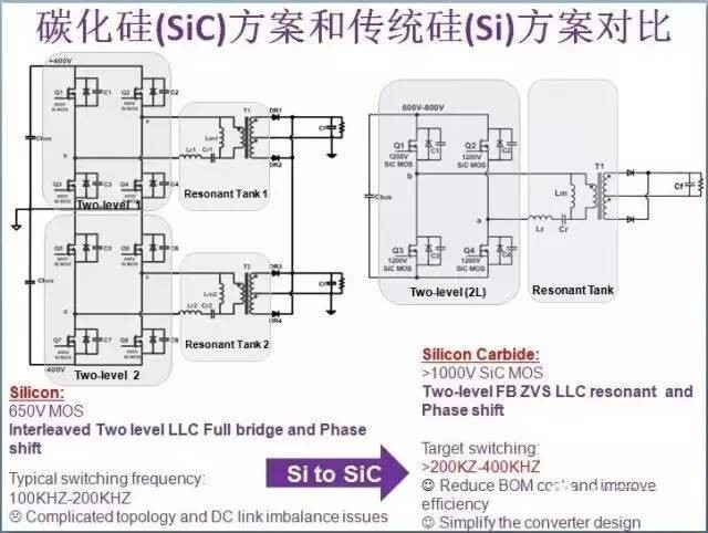 一、碳化硅的前世今生 碳化硅(SiC)是用石英砂、石油焦(或煤焦)、木屑为原料通过电阻炉高温冶炼而成。碳化硅在大自然也存在罕见的矿物,莫桑石。 碳化硅又称碳硅石。在当代C、N、B等非氧化物高技术耐火原料中,碳化硅为应用最广泛、最经济的一种。可以称为金钢砂或耐火砂。 碳化硅由于化学性能稳定、导热系数高、热膨胀系数小、耐磨性能好,除作磨料用外,还有很多其他用途,例如:以特殊工艺把碳化硅粉末涂布于水轮机叶轮或汽缸体的内壁,可提高其耐磨性而延长使用寿命1~2倍;用以制成的高级耐火材料,耐热震、体积小、重量轻而强度高,节能效果好。低品级碳化硅(含SiC约85%)是极好的脱氧剂,用它可加快炼钢速度,并便于控制化学成分,提高钢的质量。此外,碳化硅还大量用于制作电热元件硅碳棒。 碳化硅的硬度很大,莫氏硬度为9.5级,仅次于世界上最硬的金刚石(10级),具有优良的导热性能,是一种半导体,高温时能抗氧化。 碳化硅历程表 1905年 第一次在陨石中发现碳化硅 1907年 第一只碳化硅晶体发光二极管诞生 1955年 理论和技术上重大突破,LELY提出生长高品质碳化概念,从此将SiC作为重要的电子材料 1958年 在波士顿召开第一次世界碳化硅会议进行学术交流 1978年 六、七十年代碳化硅主要由前苏联进行研究。到1978年首次采用“LELY改进技术”的晶粒提纯生长方法 1987年~至今以CREE的研究成果建立碳化硅生产线,供应商开始提供商品化的碳化硅基。 2001年德国Infineon公司推出SiC二极管产品,美国Cree和意法半导体等厂商也紧随其后推出了SiC二极管产品。在日本,罗姆、新日本无线及瑞萨电子等投产了SiC二极管。 2013年9月29日,碳化硅半导体国际学会“ICSCRM 2013”召开,24个国家的半导体企业、科研院校等136家单位与会,人数达到794人次,为历年来之最。国际知名的半导体器件厂商,如科锐、三菱、罗姆、英飞凌、飞兆等在会议上均展示出了最新量产化的碳化硅器件。 到现在已经有很多厂商生产碳化硅器件比如Cree公司、Microsemi公司、Infineon公司、Rohm公司。 ![]() 碳化硅(SiC)是目前发展最成熟的宽禁带半导体材料,世界各国对SiC的研究非常重视,纷纷投入大量的人力物力积极发展,美国、欧洲、日本等不仅从国家层面上制定了相应的研究规划,而且一些国际电子业巨头也都投入巨资发展碳化硅半导体器件。 与普通硅相比,采用碳化硅的元器件有如下特性: ![]() 高压特性 碳化硅器件是同等硅器件耐压的10倍 碳化硅肖特基管耐压可达2400V。 碳化硅场效应管耐压可达数万伏,且通态电阻并不很大。 ![]() 高频特性 ![]() 高温特性 在Si材料已经接近理论性能极限的今天,SiC功率器件因其高耐压、低损耗、高效率等特性,一直被视为“理想器件”而备受期待。然而,相对于以往的Si材质器件,SiC功率器件在性能与成本间的平衡以及其对高工艺的需求,将成为SiC功率器件能否真正普及的关键。 目前,低功耗的碳化硅器件已经从实验室进入了实用器件生产阶段。目前碳化硅圆片的价格还较高,其缺陷也多。通过不断的研究开发,预计到2010年前后,碳化硅器件将主宰功率器件的市场。但实际上并非如此。 ![]() SiC器件分类 ![]() SiC-MOSFET SiC-MOSFET 是碳化硅电力电子器件研究中最受关注的器件。成果比较突出的就是美国的Cree公司和日本的ROHM公司。 在Si材料已经接近理论性能极限的今天,SiC功率器件因其高耐压、低损耗、高效率等特性,一直被视为“理想器件”而备受期待。然而,相对于以往的Si材质器件,SiC功率器件在性能与成本间的平衡以及其对高工艺的需求,将成为SiC功率器件能否真正普及的关键。 碳化硅MOS的结构 碳化硅MOSFET(SiC MOSFET)N+源区和P井掺杂都是采用离子注入的方式,在1700℃温度中进行退火激活。另一个关键的工艺是碳化硅MOS栅氧化物的形成。由于碳化硅材料中同时有Si和C两种原子存在,需要非常特殊的栅介质生长方法。其沟槽星结构的优势如下: 平面vs沟槽 ![]() SiC-MOSFET采用沟槽结构可最大限度地发挥SiC的特性。 ![]() 碳化硅MOS的优势 硅IGBT在一般情况下只能工作在20kHz以下的频率。由于受到材料的限制,高压高频的硅器件无法实现。碳化硅MOSFET不仅适合于从600V到10kV的广泛电压范围,同时具备单极型器件的卓越开关性能。相比于硅IGBT,碳化硅MOSFET在开关电路中不存在电流拖尾的情况具有更低的开关损耗和更高的工作频率。 20kHz的碳化硅MOSFET模块的损耗可以比3kHz的硅IGBT模块低一半, 50A的碳化硅模块就可以替换150A的硅模块。显示了碳化硅MOSFET在工作频率和效率上的巨大优势。 碳化硅MOSFET寄生体二极管具有极小的反向恢复时间trr和反向恢复电荷Qrr。如图所示,同一额定电流900V的器件,碳化硅MOSFET 寄生二极管反向电荷只有同等电压规格硅基MOSFET的5%。对于桥式电路来说(特别当LLC变换器工作在高于谐振频率的时候),这个指标非常关键,它可以减小死区时间以及体二极管的反向恢复带来的损耗和噪音,便于提高开关工作频率。 ![]() 碳化硅MOS管的应用 碳化硅MOSFET模块在光伏、风电、电动汽车及轨道交通等中高功率电力系统应用上具有巨大的优势。碳化硅器件的高压高频和高效率的优势,可以突破现有电动汽车电机设计上因器件性能而受到的限制,这是目前国内外电动汽车电机领域研发的重点。如电装和丰田合作开发的混合电动汽车(HEV)、纯电动汽车(EV)内功率