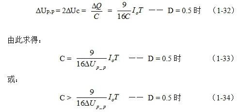 (连载07)反转式串联开关电源储能滤波电容的计算 1-3-3.反转式串联开关电源储能滤波电容的计算 反转式串联开关电源储能滤波电容参数的计算,与串联式开关电源储能滤波电容的计算方法基本相同。但要注意,即使是在占空比D等于0.5的情况下,滤波电容器充、放电的时间都不相等,滤波电容器充电的时间小于半个工作周期,而电容器放电的时间则大于半个工作周期,但电容器充、放电的电荷是相等的,即电容器充电时的电流大于放电时的电流。这是整流滤波电路的普遍规律。 ![]() 从图1-8可以看出,在占空比D等于0.5的情况下,电容器充电的时间为3T/8 ,电容充电电流的平均值为3iLm/8或3Io/2 ;而电容器放电的时间为5T/8,电容放电电流的平均值为0.9 Io。因此有: ![]() 式中ΔQ为电容器充电的电荷,Io流过负载的平均电流,T为工作周期。电容充电时,电容两端的电压由最小值充到最大值(绝对值),相应的电压增量为2ΔUc,由此求得电容器两端的波纹电压ΔUP-P为: ![]() (1-33)和(1-34)式,就是计算反转式串联开关电源储能滤波电容的公式(D = 0.5时)。式中:Io是流过负载电流的平均值,T为开关工作周期,ΔUP-P为滤波输出电压的波纹,或电压纹波。一般波纹电压都是取电压增量的峰-峰值,因此,当D = 0.5时,波纹电压等于电容器充电的电压增量,即:ΔUP-P = 2ΔUc 。 同理,(1-33)和(1-34)式的计算结果,只给出了计算反转式串联开关电源储能滤波电容C的中间值,或平均值,对于极端情况可以在平均值的计算结果上再乘以一个大于1的系数。 当开关K的占空比D小于0.5时,由于流过储能滤波电感L的电流会不连续,电容器放电的时间将远远大于电容器充电的时间,因此,开关电源滤波输出电压的纹波将显著增大。另外,开关电源的负载一般也不是固定的,当负载电流增大的时候,开关电源滤波输出电压的纹波也将会增大。因此,设计开关电源的时候要留有充分的余量,实际应用中最好按(1-33)式计算结果的2倍以上来计算储能滤波电容的参数。
