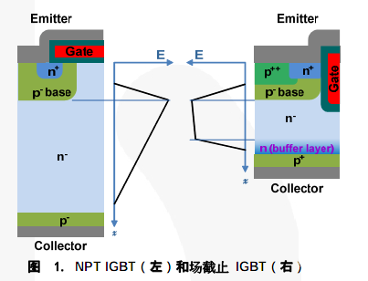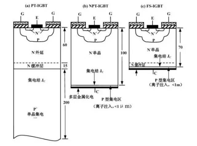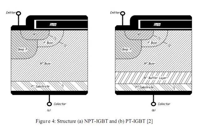 引言![]() 电的发现是人类历史的革命,由它产生的动能每天都在源源不断的释放,人对电的需求不亚于人类世界的氧气,如果没有电,人类的文明还会在黑暗中探索。 然而在电力电子里面,最重要的一个元件就是IGBT。没有IGBT就不会有高铁的便捷生活。一说起IGBT,半导体制造的人都以为不就是一个分立器件(Power Disceret)嘛,都很瞧不上眼。然而他和28nm/16nm集成电路制造一样,是国家“02专项”的重点扶持项目,这玩意是现在目前功率电子器件里技术最先进的产品,已经全面取代了传统的Power MOSFET,其应用非常广泛,小到家电、大到飞机、舰船、交通、电网等战略性产业,被称为电力电子行业里的“CPU”,长期以来,该产品(包括芯片)还是被垄断在少数IDM手上(FairChild、Infineon、TOSHIBA),位居“十二五”期间国家16个重大技术突破专项中的第二位(简称“02专项”)。 究竟IGBT是何方神圣?让我们一起来学习它的理论吧。 1、何为IGBT? GBT全称为绝缘栅双极型晶体管(Insulated Gate Bipolar Transistor),所以它是一个有MOS Gate的BJT晶体管。奇怪吧,它到底是MOSFET还是BJT?其实都不是又都是。不绕圈子了,他就是MOSFET和BJT的组合体。 我在前面讲MOSFET和BJT的时候提到过他们的优缺点,MOSFET主要是单一载流子(多子)导电,而BJT是两种载流子导电,所以BJT的驱动电流会比MOSFET大,但是MOSFET的控制级栅极是靠场效应反型来控制的,没有额外的控制端功率损耗。所以IGBT就是利用了MOSFET和BJT的优点组合起来的,兼有MOSFET的栅极电压控制晶体管(高输入阻抗),又利用了BJT的双载流子达到大电流(低导通压降)的目的(Voltage-Controlled Bipolar Device)。从而达到驱动功率小、饱和压降低的完美要求,广泛应用于600V以上的变流系统如交流电机、变频器、开关电源、照明电路、牵引传动等领域。 ![]() 为了等一下便于理解IGBT,我还是先讲下Power MOSFET的结构。所谓功率MOS就是要承受大功率,换言之也就是高电压、大电流。我们结合一般的低压MOSFET来讲解如何改变结构实现高压、大电流。 ![]() 1)高电压:一般的MOSFET如果Drain的高电压,很容易导致器件击穿,而一般击穿通道就是器件的另外三端(S/G/B),所以要解决高压问题必须堵死这三端。Gate端只能靠场氧垫在Gate下面隔离与漏的距离(Field-Plate),而Bulk端的PN结击穿只能靠降低PN结两边的浓度,而最讨厌的是到Source端,它则需要一个长长的漂移区来作为漏极串联电阻分压,使得电压都降在漂移区上就可以了。 2) 大电流:一般的MOSFET的沟道长度有Poly CD决定,而功率MOSFET的沟道是靠两次扩散的结深差来控制,所以只要process稳定就可以做的很小,而且不受光刻精度的限制。而器件的电流取决于W/L,所以如果要获得大电流,只需要提高W就可以了。 所以上面的Power MOSFET也叫作LDMOS (Lateral Double diffusion MOS)。虽然这样的器件能够实现大功率要求,可是它依然有它固有的缺点,由于它的源、栅、漏三端都在表面,所以漏极与源极需要拉的很长,太浪费芯片面积。而且由于器件在表面则器件与器件之间如果要并联则复杂性增加而且需要隔离。所以后来发展了VDMOS(Vertical DMOS),把漏极统一放到Wafer背面去了,这样漏极和源极的漂移区长度完全可以通过背面减薄来控制,而且这样的结构更利于管子之间的并联结构实现大功率化。但是在BCD的工艺中还是的利用LDMOS结构,为了与CMOS兼容。 再给大家讲一下VDMOS的发展及演变吧,最早的VDMOS就是直接把LDMOS的Drain放到了背面通过背面减薄、Implant、金属蒸发制作出来的(如下图),他就是传说中的Planar VDMOS,它和传统的LDMOS比挑战在于背面工艺。但是它的好处是正面的工艺与传统CMOS工艺兼容,所以它还是有生命力的。但是这种结构的缺点在于它沟道是横在表面的,面积利用率还是不够高。 再后来为了克服Planar DMOS带来的缺点,所以发展了VMOS和UMOS结构。他们的做法是在Wafer表面挖一个槽,把管子的沟道从原来的Planar变成了沿着槽壁的vertical,果然是个聪明的想法。但是一个馅饼总是会搭配一个陷阱(IC制造总是在不断trade-off),这样的结构天生的缺点是槽太深容易电场集中而导致击穿,而且工艺难度和成本都很高,且槽的底部必须绝对rouding,否则很容易击穿或者产生应力的晶格缺陷。但是它的优点是晶饱数量比原来多很多,所以可以实现更多的晶体管并联,比较适合低电压大电流的application。 ![]() 还有一个经典的东西叫做CoolMOS,大家自己google学习吧。他应该算是Power MOS撑电压最高的了,可以到1000V。 3、IGBT的结构和原理上面介绍了Power MOSFET,而IGBT其实本质上还是一个场效应晶体管,从结构上看和Power MOSFET非常接近,就在背面的漏电极增加了一个P+层,我们称之为Injection Layer (名字的由来等下说).。在上面介绍的Power MOSFET其实根本上来讲它还是传统的MOSFET,它依然是单一载流子(多子)导电,所以我们还没有发挥出它的极致性能。所以后来发展出一个新的结构,我们如何能够在Power MOSFET导通的时候除了MOSFET自己的电子我还能从漏端注入空穴不就可以了吗?所以自然的就在漏端引入了一个P+的injection layer (这就是名字的由来),而从结构上漏端就多了一个P+/N-drift的PN结,不过他是正偏的,所以它不影响导通反而增加了空穴注入效应,所以它的特性就类似BJT了有两种载流子参与导电。所以原来的source就变成了Emitter,而Drain就变成了Collector了。 ![]() 从上面结构以及右边的等效电路图看出,它有两个等效