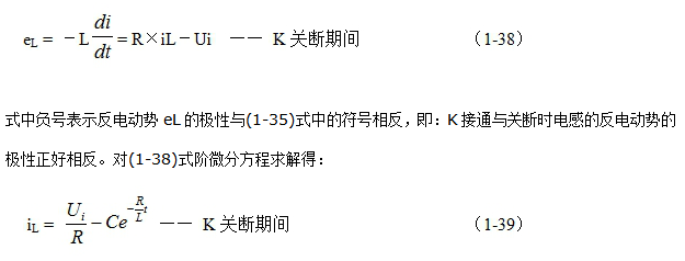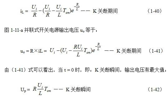 (连载08)并联式开关电源的工作原理 (连载01)开关电源的基本工作原理 (连载02)串联式开关电源输出电压滤波电路 (连载03)串联式开关电源储能滤波电感的计算 (连载04)串联式开关电源储能滤波电容的计算(2) (连载05)反转式串联开关电源 (连载06)反转式串联开关电源储能电感的计算 (连载07)反转式串联开关电源储能滤波电容的计算 1-4-1.并联式开关电源的工作原理 图1-11-a是并联式开关电源的最简单工作原理图,图1-11-b是并联式开关电源输出电压的波形。图1-11-a中Ui是开关电源的工作电压,L是储能电感,K是控制开关,R是负载。图1-11-b中Ui是开关电源的输入电压,Uo是开关电源输出的电压,Up是开关电源输出的峰值电压,Ua是开关电源输出的平均电压。 ![]() 当控制开关K接通时,输入电源Ui开始对储能电感L加电,流过储能电感L的电流开始增加,同时电流在储能电感中也要产生磁场;当控制开关K由接通转为关断的时候,储能电感会产生反电动势,反电动势产生电流的方向与原来电流的方向相同,因此,在负载上会产生很高的电压。 在Ton期间,控制开关K接通,储能滤波电感L两端的电压eL正好与输入电压Ui相等,即:eL = Ldi/dt = Ui K接通期间 (1-35) ![]() 式中iL为流过储能电感L电流的瞬时值,t为时间变量,i(0)为流过储能电感的初始电流,即:开关K接通前瞬间流过储能电感的电流。一般当占空比D小于或等于0.5时,i(0)= 0,由此可以求得流过储能电感L的最大电流ILm为: ILm =Ui*Ton/L K接通期间(D = 0.5) (1-37) 式中Ton为控制开关K接通的时间。当图1-11-a中的控制开关K由接通状态突然转为关断时,储能电感L会把其存储的能量(磁能)通过反电动势进行释放,储能电感L产生的反电动势为: ![]() 式中C为常数,把初始条件代入上式,就很容易求出C,由于控制开关K由接通状态突然转为关断时,流过储能电感L中的电流iL不能突变,因此,i(Ton+)正好等于流过储能电感L的最大电流ILm ,所以(1-39)式可以写为: ![]() 当t等于很大时,并联式开关电源输出电压的值将接近输入电压Ui,但这种情况一般不会发生,因为控制开关K的关断时间等不了那么长。 从(1-42)式可以看出,当并联式开关电源的负载R很大或开路时,输出脉冲电压的幅度将非常高。因此,并联式开关电源经常用于高压脉冲发生电路。 本文章在网上摘抄整理,总共83连载,供大家学习使用。如涉及版权请告知,我们将在24小时内删除。