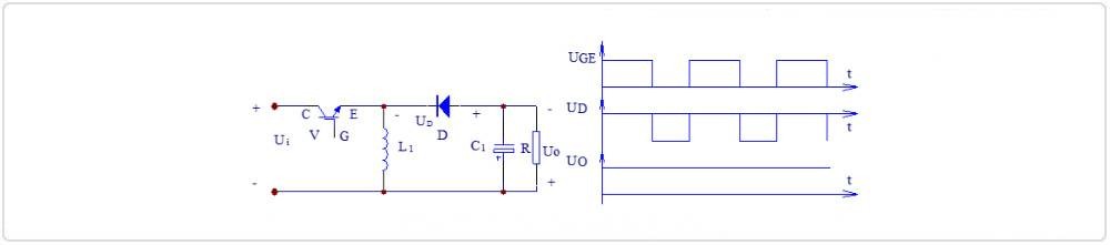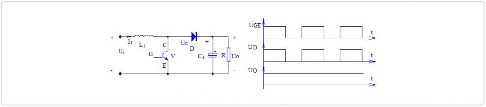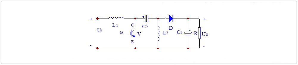 引言 斩波器是一种将电压值固定的直流电,转换为另一固定电压或可调电压的装置,一般是指直流对直流的转换。斩波电路是斩波器的核心组成部分,负责将输入电压转换成目标输出电压。根据输入输出电压大小、极性,斩波电路可分为降压斩波电路、升压斩波电路、升降压斩波电路、Cuk斩波电路、Sepic斩波电路、Zeta斩波电路等,下面本文主要介绍以上几种斩波电路的工作原理。 1、降压斩波电路 图1:降压斩波电路(Buck Chopper)原理图及波形图如上图1:降压斩波电路原理图及波形图所示,图中V为全控型器件,选用IGBT;D为续流二极管。由图1中V的栅极电压波形UGE可知,当V处于通态时,电源Ui向负载供电,UD=Ui。当V处于断态时,负载电流经二极管D续流,电压UD近似为零,至一个周期T结束,再驱动V导通,重复上一周期的过程。负载电压的平均值为: ![]() 式中ton为V处于通态的时间,toff为V处于断态的时间,T为开关周期,α为导通占空比,简称占空比或导通比(α=ton/T)。由此可知,输出到负载的电压平均值UO最大为Ui,若减小占空比α,则UO随之减小,由于输出电压低于输入电压,故称该电路为降压斩波电路。 2、 升压斩波电路![]() 图2:升压斩波电路(Boost Chopper)原理图及波形图 如上图2:升压斩波电路原理图及波形图所示,电路也使用一个全控型器件V。由图2中V的栅极电压波形UGE可知,当V处于通态时,电源Ui向电感L1充电,充电电流基本恒定为I1,同时电容C1上的电压向负载供电,因C1值很大,基本保持输出电压UO为恒值。设V处于通态的时间为ton,此阶段电感L1上积蓄的能量为Ui*I1*ton。当V处于断态时Ui和L1共同向电容C1充电,并向负载提供能量。设V处于断态的时间为toff,则在此期间电感L1释放的能量为(UO-Ui)*I1*toff。当电路工作于稳态时,一个周期T内电感L1积蓄的能量与释放的能量相等,即: ![]() 上式中的T/toff≥1,输出电压高于电源电压,故称该电路为升压斩波电路。 3、升降压斩波电路![]() 图3:升降压斩波电路(Boost-Buck Chopper)原理图及波形图 如上图3:升降压斩波电路原理图及波形图所示,电路的基本工作原理是:当可控开关V处于通态时,电源Ui经V向电感L1供电使其贮存能量,同时C1维持输出电压UO基本恒定并向负载供电。此后,V关断,电感L1中贮存的能量向负载释放。可见,负载电压为上负下正,与电源电压极性相反。输出电压为: ![]() 若改变导通比α,则输出电压可以比电源电压高,也可以比电源电压低。当0<α<1/2时为降压,当1/2<α<1时为升压。 4、Cuk斩波电路![]() 图4:Cuk斩波电路原理图 如上图4:Cuk斩波电路原理图所示,电路的基本工作原理是:当可控开关V处于通态时,UiL1V回路和负载RL2C2V回路分别流过电流。当V处于断态时,UiL1C2D回路和负载RL2D回路分别流过电流,输出电压的极性与电源电压极性相反。输出电压为: ![]() 若改变导通比α,则输出电压可以比电源电压高,也可以比电源电压低。当0<α<1/2时为降压,当1/2<α<1时为升压。 5、Sepic斩波电路![]() 图5:Sepic斩波电路原理图 如上图5:Sepic斩波电路:原理图所示,电路的基本工作原理是:可控开关V处于通态时,UiL1V回路和C2VL2回路同时导电,L1和L2贮能。当V处于断态时,UiL1C2DR回路及L2DR回路同时导电,此阶段Ui和L1既向R供电,同时也向C2充电,C2贮存的能量在V处于通态时向L2转移。输出电压为: ![]() 若改变导通比α,则输出电压可以比电源电压高,也可以比电源电压低。当0<α<1/2时为降压,当1/2<α<1时为升压。 6、Zeta斩波电路![]() 图6:Zeta斩波电路原理图 如上图6所示:Zeta斩波电路原理图所示,电路的基本工作原理是:当可控开关V处于通态时,电源Ui经开关V向电感L1贮能。当V处于断态后,L1经D与C2构成振荡回路,其贮存的能量转至C2,至振荡回路电流过零,L1上的能量全部转移至C2上之后,D关断,C2经L2向负载R供电。输出电压为: ![]() 若改变导通比α,则输出电压可以比电源电压高,也可以比电源电压低。当0<α<1/2时为降压,当1/2<α<1时为升压。