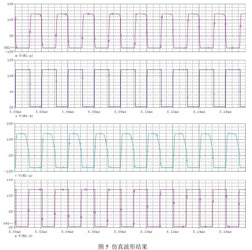 摘要 随着MOSFET 的应用日益广泛,在一些特殊场合常常会使用到互补MOSFET。本文针对互补MOSFET 的驱动问题进行了深入讨论,比较了常用的驱动电路,提出了一种针对互补MOSFET 设计的新型驱动电路,并通过仿真验证了结果。 随着电力半导体器件的发展,已经出现了各种各样的全控型器件,最常用的有适用于大功率场合的大功率晶体管(GTR)、适用于中小功率场合但快速性较好的功率场效应晶体管(MOSFET)以及结合GTR 和功率MOSFET 而产生的功率绝缘栅控双极晶体管(IGBT)。在这些开关器件中,功率MOSFET 由于开关速度快,驱动功率小,易并联等优点成为开关电源中最常用的器件,尤其在为计算机、交换机、网络服务器等通信电子设备提供能量的低压大电流开关电源中。随着MOSFET 的应用日益广泛,在一些特殊场合常常要使用到互补的MOSFET,本文针对这个问题提出了一种针对互补MOSFET 电路设计的驱动电路。 功率 MOSFET 对驱动电路的要求: 功率MOSFET 是电压型驱动器件,没有少数载流子的存贮效应,输入阻抗高,因而开关速度可以很高,驱动功率小,电路简单。但功率MOSFET 的极间电容较大,其等效电路如图1 所示,输入电容Ciss,输出电容Coss 和反馈电容Crss 与极间电容的关系可表示为: ![]() 功率MOSFET 的栅极输入端相当于一个容性网络,它的工作速度与驱动源内阻抗有关。理想的栅极驱动电路的等效电路如图所示,由于Ciss 的存在,静态时栅极驱动电流几乎为零,但在开通和关断动态过程中,仍需要一定的驱动电流。 ![]() MOSFET 对驱动电路通常要求:触发脉冲具有足够快的上升和下降速度;②开通时以低电阻为栅极电容充电,关断时为栅极提供低电阻放电回路,以提高功率MOSFET 的开关速度;③为了使功率MOSFET 可靠触发导通,触发脉冲电压应高于管子的开启电压,为了防止误导通,在其截止时应提供足够负的反向栅源电压;④功率开关管开关时所需驱动电流为栅极电容的充放电电流,功率管极间电容越大,所需电流越大,即带负载能力越大。 几种常见实用驱动电路的比较 1.直接驱动电路 比较简单又比较可靠的驱动方式是使用集电极开路的 TTL 按图2 所示与功率MOSFET连接。这种方式可以产生足够高的栅压使器件充分导通,并保证较高的关断速度。由于外接负载电阻RL 须有一定大小,以限制TTL 的低电平输出晶体管的功率耗散,因而这种驱动方式的开通速度不够高。 ![]() 2.隔离驱动电路 通常隔离驱动电路按隔离方式基本上可分为光耦隔离驱动电路和脉冲变压器隔离驱动电路两类。由于光耦本身特性的限制,其工作频率最高只有40k Hz 左右,在高频场合的应用受到限制。隔离驱动电路的缺点是需要增加辅助电源,有的还要正负极性的电源,这就使得电路复杂,成本增加。图3a 所示的驱动电路,虽然电路简单,不需辅助电源,但是由于变压器的工作特点,驱动信号占空比很大时会导致加在 MOSFET 栅极的负向脉冲幅值很大,容易损坏管子。而占空比很小时栅极的负向电压很低,而且只能维持很短的时间,不能保证可靠关断。栅射之间并联的稳压管能限制电压,但是将会对信号的边沿产生影响。图3b 所示电路虽然能够提供可靠的关断负压,但是仍然存在驱动信号边沿不陡的问题,限制了驱动频率。 ![]() 互补 MOSFET 的隔离驱动电路设计 工作原理 ![]() 驱动电路如图所示,以正向电路为例,频率为50kHz 脉冲信号,通过高频脉冲变压器耦合去驱动功率MOSFET 管,次级脉冲电压为正时,MOSFET 导通,在此期间Q3 截止,由其构成的泄放电路不工作。当次级脉冲电压为零时,则Q3 导通,快速泄放MOSFET 栅极电荷,加速MOSFET 的截止。R7 是用于抑制驱动脉冲的尖峰,R9,D3,R11,D5,R13 可以加速驱动并防止驱动脉冲产生振荡。由D7, D9 构成的电路对电压波形的负向进行削波,由D11, D13 构成的电路对电压波形的正向进行削波,D1 和与它相连的脉冲变压器绕组共同构成去磁电路。 仿真波形结果: ![]() 本文作者创新点:针对目前对MOSFET 应用日益广泛,在一些特殊场合常常会用到互补MOSFET 而各类文献中较少涉及互补MOSFET 的驱动问题,提出了对互补MOSFET 的驱动电路设计,并通过仿真对结果进行了验证。 作者:金一鸣,张齐