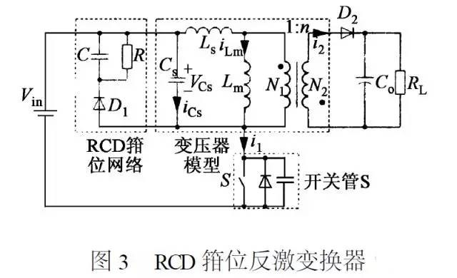 1.引言 随着单端反激变换器在高频高压场合的应用,变压器寄生参数的控制对电路的正常运行以及性能优化尤为关键。文中对变压器分布电容对电路的影响进行了透彻分析,给出了一般性的模型,并以高输入电压低输出电压场合为例,对该模型进行了等效处理,继而详细分析了分布电容对电路工作产生的影响,归纳出有意义的结论,并基于以上研究,提出控制寄生参数的工程方法,并通过实验验证了文中分析的正确性及抑制方法的实用性。 随着应用场合输入、输出电压等级的提高,以及为适应小型化要求而采用更高开关频率的发展趋势下,反激变换器的正常运行及性能优化越来越受到其变压器寄生参数的限制。变压器的寄生参数主要是漏感和分布电容。很多研究人员对该变换器中变压器漏感已作了详实的研究,得出很多有意义的结论。本文主要针对变压器另一重要的寄生参数分布电容对电路工作的影响进行研究,探讨变压器漏感与分布电容的有效控制措施及合理匹配方案,从而优化整机性能。首先给出计及漏感和分布电容的变压器模型,继而给出了变压器分布电容对电路工作的影响,分析了具体的工作模态,从而归纳出一些有意义的结论。基于以上研究,提出控制寄生参数及合理匹配漏感和分布电容的措施。 2 .计及分布电容的变压器模型 很多文献在讨论变压器寄生参数对反激变换器整机工作的影响时,只对漏感进行了详细的讨论,而忽略了分布电容的影响,这在开关频率相对较低情况下尚可接受,但随着开关频率的提高及输入输出电压等级的提高,分布电容对整机工作的影响程度会大大增加,采用只考虑漏感的变压器模型已无法准确预测变换器的工作情况及解释实际工作中出现的一些特殊现象,必须采用同时考虑漏感和分布电容的变压器模型,来逼近真实情况。 有一篇文章中(《R Piieto , R Asensi , J A Cobos , et al. Model of the capacitiveeffects in magnetic components [ A ] . PESC 1995 [ C ] .Atlanta , GA , USA , 1995. 6782683.》)给出四种仅考虑分布电容时的变压器模型,这些模型具有不同的精度,适用于开关电源的EMI 传导分析,并不适合于实际电路分析。采用有限元分析方法,进行数值求解可获得较精确的变压器模型,但计算量较大。经过对比分析,本文认为变压器模型较为适用于工程应用分析,其中两绕组的变压器可以用图1 所示的二端口网络表示。变压器模型由电感、电容、电阻和一个两绕组的理想变压器组成。其中,Ls1 、Ls2 、Lm 分别表示原副边漏感和磁化电感; R1 、R2 、Rm 分别代表与原副边铜损及变压器铁损相对应的折算阻值,这三个参数均与开关频率有一定关系。Cs1 、Cs2 分别代表原边、副边的匝间电容, Cs12 代表原边绕组与副边绕组之间的分布电容。 ![]() 作为机内辅助电源,反激变换器较多地应用于输入高压、输出低压的场合,在原理分析及设计中,上述模型可作进一步的等效简化处理。因原边匝数一般较多,常绕成多层结构,原边绕组等效分布电容和漏感均较大,而对于高压输入,开关转换时分布电容储能变化较大,对变换器产生的影响也较大。而副边匝数一般较少,等效分布电容和漏感均较小,且输出低压,分布电容储能变化较小,相应产生的影响也较小,故忽略副边绕组的寄生参数。从而得到图2 所示的简化等效模型。 ![]() 3.分布电容对反激变换器的影响 文中以图3 所示RCD 箝位反激变换器在DCM工作模式下的情况为例,分析变压器分布电容对高压高频反激变换器的影响,给出主要工作模态分析。 在分析之前,作如下假设: (1) 箝位二极管D1为理想器件,所有电感、电容均为理想元件; (2) 输出滤波电容Co 足够大。 ![]() 计及分布电容和漏感后,变换器每周期共有图4 所示的5 个主要工作模态, 图5 给出主要工作波形。 (1) 模态1 [ t0~ t1 ] 开关管S 开通之前,变压器绕组电压电流为零, Cs 储能为零, S 承受的电压为VDS = Vin 。t = t0时刻, S 导通,等效分布电容Cs 两端电压将发生变化,电容Cs 通过开关管充电,在输入电压一定时,充电电流幅值取决于开关管的开通速度。至t = t1时刻,开关管完全导通,即Cs 两端电压等于Vin 时,原边电流才开始线性上升。如图4 (a) 所示。 (2) 模态2 [ t1~ t2 ] 如图4 (b) 所示,在t1 ~ t2 时段内,开关管S 处于通态,原边电流线性上升,磁化电感储存能量。 (3) 模态3 [ t2~ t3 ] 如图4 (c) 所示, t2 时刻, S 管关断,但由于Ls和Cs 之间的能量交换以及S 管结电容充电,Lm 中的磁化电流不能迅速传递到副边,具有一定的延迟时间。在此期间内,变压器原边漏感会产生幅度很高的反电势,如果不对它进行吸收,它会与变压器初级线圈之间的分布电容进行来回充放电,即产生高频振铃。加上RCD 箝位网络后,由于箝位电容C 充电时与变压器初级线圈之间的分布电容并联, C 的作用会使产生振铃的频率大大降低,幅度也降低。此能量转换过程将一直持续到t3 时刻,等效分布电容充电至VCs = - Vo/n。 (4) 模态4 [ t3~ t4 ] t3 时刻,等效分布电容充电至VCs = - Vo/n ,副边二极管导通,变压器磁化电流线性下降。在此模态中原边开关管S 承受的电压为: VDS = Vin + Vo/n ,直至t4 时刻,Lm 中能量传递结束。 (5) 模态5 [ t4~ t5 ] t4 时刻,磁化电感能量释放完毕,副边二极管关断。绕组分布电容与漏感、功率管漏源寄生电容发生谐振,VCs 、VDS波形出现振荡,其振荡衰减过程与电路阻尼程度有关。 由上分析可见,高频高压反激变换器中变压器