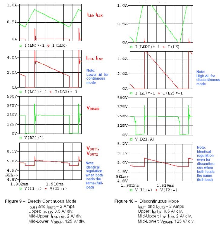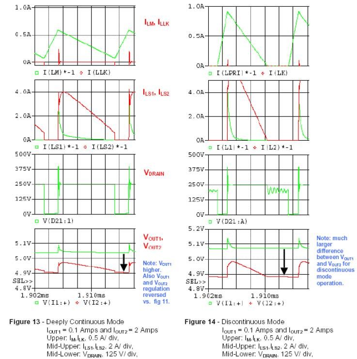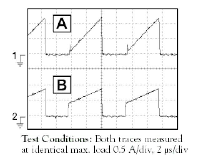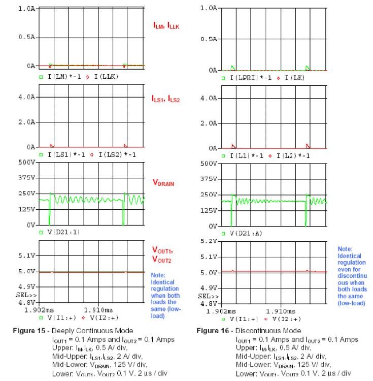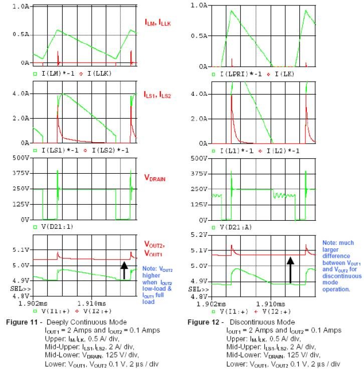 摘要 请您在烦忙的日常工作之余稍事休息,来回答下面三个关于多路输出电源连续工作模式的问题,测试一下您的电源设计知识。然后核对你的答案。 下图是一个典型的多路输出单端反激式开关电源原理图。下面是关于深度工作模式的问题。 ![]() 问题1:初级问题 漏极电流波形A、B是在同一个电源但变压器原边电感量不同的条件下测量的。表1既包括有效电流和包括峰值电流。 ![]() ![]() a. 从(W、X、Y和Z)选出波形A、B的峰值电流值 b. 从(W、X、Y和Z)选出波形A、B的有效电流值 c. 峰值电流和有效电流中,哪一个对电源效率更重要? 参考答案: a. 波形A 的峰值电流值Ipk= Y (1.2 A)。波形B 的峰值电流值Ipk= X (0.88 A)。 这可从波形图上直接测出。 b. 波形A的有效电流值 Irms= W (0.568 A)。波形B 的有效电流值Irms= Z (0.538 A)。 有效电流可按如下方法计算: 有效电流和极限电流的计算 ![]() 下述公式给出了原边电流在不连续模式或边界连续/不连续)状态下有效电流的计算方法: ![]() ![]() 下述公式给出了原边电流在连续模式状态下的有效电流计算方法: ![]() 运用本公式和从原边电流波形测得数据,我们都可以计算出以上两个电流波型的有效电流值。请注意波形A是轻度连续 - 这可以从波形 A的非零初始电流值看出来。因此波形A和波形B都应该运用连续模式公式来计算有效值。 ![]() 表2- 波形A、B - 测量数据 ![]() 表3- 波形A、B - 计算值 有效电流和峰值电流都会影响电源效率。峰值电流决定漏(1/2.L.Ipk2))的寄生功率损失。有效电流决定有阻元件,如主MOSFET管(IRMS2. RDs(ON))和电源内有阻元件的功率损失。可以看出,以连续导电模式工作将大大降低有效电流(要知道阻抗损失与有效电流的平方成比例,因此有效电流即使增量很小,计算出的阻抗损失也可能很大)。 例如对于所论述的电源,波形A、B的效率分别如下: ![]() 表4- 波形A、B – 电源效率 本实例说明只要开关电流有效值少量减少就可以很大程度地提高电源效率。 问题2:高级问题 a. 请将波形A和波形B与交叉调节性能数据(P和Q)相匹配。 b. 为什么原边电感量变化会引起交叉调节性能的变化? ![]() ![]() 表5- 从最小负载到最大负载的各种输出的调节百分比(±) 参考答案: a. 波形A与交叉调节结果Q相配,波形B与交叉调节结果P相配。 b. 反(激)式变压器的原边电感量不仅决定工作模式,即是连续,或者是不连续,而且决定联系或不连续的程度。在给定的输出功率的情况下,以连续模式工作时(例如波形B)具有较低的峰值电流,这将改善交叉调节。 ![]() 表6- 波形A和波形B - 从最小负载到最大负载的调节百分比(±)。 ![]() ![]() 上图为一个多路输出反(激)式变压器的电感模型,变压器显示具有如下参量: LM – 磁化(主)电感 LLK – 初始磁漏电感 – 由此磁漏电感引起的电压尖脉冲受钳位电路 (D1、C1和R1)的限制。 LS1 – 输出1次级磁漏电感 LS2 – 输出2次级磁漏电感 当主开关(SW1)接通时,磁化电感和原边漏感内的电流会同时增加。主开关关闭时,Lm两端的电压受到限制,同时原边漏感复位,,它的电流释放到主钳位电路(R1、C1和D1)中。一旦原边漏感回零,磁化电感内的余能会输送到次级回路内。由于这是一种反激式拓朴技术,次级绕阻电流在SW1关闭时(图b)从零开始增加,由于LS1和LS2之间的电流较大,所以在LS1和LS2上形成压降。此电压使各种输出之间产生误差,输出取决于次级极限电流,进而取决于输出负载和工作模式。由于连续模式设计具有较低的次级峰值电流,这种误差可以降低到最小因而交叉调整率得到改善 下图所示波形取自一张两路同为5V输出电源的模拟图。所示为两变压器的显示结果:一个电感较高(工作模式为深度连续导电模式),另一个电感较低(工作模式为不连续导电模式)。 从每组图的下方波形可以很容易地看出两种输出电压VOUT1和VOUT2,随着输出负载的不同而不同(如图11至14所示,一个在最低负载,另一个在最高负载)。这是因为各自的次级漏感的压降不同而造成的。同样可以看出输出调整率在深度连续的工作模式下要大大优于其它模式(这是由于较低的di/dt和极限电流)。 注意:当两种输出的负载电流相同时(如图9、10、15和16所示),在调整率上将无差别,因为两种情况下的次级漏感的压降相同。 ![]() ![]() ![]() ![]() 问题3:专业问题 多路输出电源在以连续方式工作时的主要优点是什么?在进入深度连续模式的能力上,电压控制模式和电流控制模式有什么不同? 参考答案: 连续工作模式具有如下主要优点: ● 较低的有效电流可产生较高的效率 ●在多路输出设计中,较小峰值电流较低有利于交叉调整率 ●较低的峰值电流较低会同样有益于减少差模传导(辐射)EMI(或可用较小输入电容)。 ●较低峰值电流和有效电流有利于改善输出纹波(或可用较小的输出电容) ●连续工作模式能产生更高的回路增益,因而比非连续工作模式有更快的响应速度。 基本上,电流控制模式占空比不能超过50%否则有不稳定工作的风险。在一定输出功率条件下,相对允许占空比大于50%而言,50%最大空比的限制比会导致更高的峰值电流。用斜率补偿的方式可以突破50%的占空比的限制,但这需要对器件进行认真选择。 与之相反,电压控制模式对最大空比没有限制。这使得极连续的电压模式设计具有其特有的优点。 以上三道题的答案仅供参考,不代表的观点 基于实际项目,原创反激开关电源视