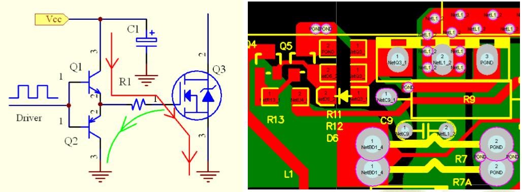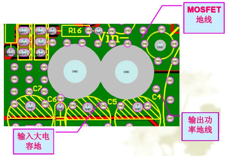摘要 Ⅰ、 地”的概念 Ⅱ、开开关电源中“地”的分类 Ⅲ、开关电源中接地的方式 Ⅳ、实际布线中关于 “地 ”的考虑 Ⅴ、总结 “地”的概念 Ⅰ、定义 作为电路或系统基准的等电位点或平面 Ⅱ、符号 ![]() Ⅲ、作用 不同种类的接地作用各异 Ⅳ、关于“ 地”的思考 ●理想地线应是一个零电位、零阻抗的物理实体 ●实际的布线中,地线在PCB上,本身会有阻抗 成分,又有分布电容、电感构成的电抗成分; 根据欧姆定律,有电流通过就会产生压降 ●地线跟源(电源、信号源)构成回路,此回路的 电场会感应出外部电磁场的RF电流,即常说 的“噪声”,从而引起EMI问题 开关电源中地的分类 ●交流地 ●直流地 ●模拟地 ●数字地 ●热地 ●冷地 ●功率地 ●信号地 ●安全地 ●屏蔽地 ●系统地 ●浮地 Ⅰ、交流地: 交流电的零线,这种地通常是产生噪声的 地,应与大地区别开 Ⅱ、直流地 直流电路“地”,零电位参考点 Ⅲ、模拟地: 是各种模拟量信号的零电位 Ⅳ、数字地: 也叫逻辑地,是数字电路各种开关量(数字量)信号的零电位 Ⅴ、热地: 指变压器初级地,跟电网不隔离 ,带电 Ⅵ、冷地: 指变压器次级地,跟电网隔离 ,不带电 Ⅶ、功率地: 大电流网络器件、功率电子与磁性器件的零电位参考点 Ⅷ、信号地: 一般指传感变化信号的地线 Ⅸ、安全地: 提供大地接地点的回路,可防止触电危险 Ⅹ、屏蔽地 : 为互联的电缆与主要机架提供0V参考或电磁屏蔽,防止静电感应和磁场感应 Ⅺ、系统地: 整个系统模拟、数字信号公共参考点 Ⅻ、浮地: 将电路中某条支路作为0V参考而不接地 接地的方式 ●单点接地 ●多点接地 ●混合接地 ●接地选取的原则 Ⅰ、单点接地 ●指所有电路的地线接到公共地线的同一点, 以减少地回路之间的相互干扰。 ●可以防止不同子系统中的电流与RF电流,经 过同样的返回路径,从而避免造成相互之间 的共模噪声耦合。 ●根据不同系统的特点,可以选择串联单点接 地与并联单点接地。 A、单点串联接地:指所有的器件的地都连接到地总线上,然后通过总线连接到地汇接点 ![]() ●存在着相互的共阻抗干扰: ![]() ●优点: 分布传输的阻抗极小 布线简单,美观 ●缺点: 不适合于高频电路(f≥1MHz) 不适合于多个功率回路电路 各子系统之间存在着共阻抗干扰 由于对地分布电容的影响,会产生并联 谐振现象,大大增加地线的阻抗 B、单点并联接地 :指所有的器件的地直接接到地汇接点,不共用地总线 ![]() ●优点: 可以防止系统内各模块之间的共阻抗干扰 ●缺点: 不适合于高频电路(f≥1MHz) 会受到并联谐振的影响 由于各自的地线较长,地回路阻抗不同, 会加剧地噪声的影响,引起RF问题 Ⅱ、多点接地 指系统内各部分电路就近接地 ![]() ●优点: 多根导线并联能够降低接地导体的总电感 能够提供较低的接地阻抗 ●缺点 : 每根接地线的长度小于信号波长的1/20 多点接地可能会导致设备内部形成许多接地 环路,从而降低设备对外界电磁场的抵御能力 不同的模块、设备之间组网时,地线回路容 易导致EMI问题 Ⅲ、混合接地 ●结合了单点接地和多点接地的综合应用,一 般是在单点接地的基础上再通过一些电感或 电容多点接地,它是利用电感、电容器件在 不同频率下有不同阻抗的特性,使地线系统 在不同的频率下具有不同的接地结构,主要 适用于工作在混合频率下的电路系统。 ●要注意分清楚模拟电路的地与数字电路的 地,以及他们的最佳公共连接点 Ⅳ、接地的一般选取原则 ●以最高频率(对应波长为λ)为考虑对象, 当传输线的长度 L>λ,则视为高频电路,反 之,则视为低频电路。 (1)低频电路(<1MHz),建议采用单点接地; (2)高频电路(>10MHz),建议采用多点接地; (3)高、低频混合电路,采用混合接地。 开关电源实际布线过程中关于“地”的考虑总则: ●根据实际应用,先分清楚地线的种类, 然后选择不同的接地方式 ●不论何种接地方式,都须遵守“低阻 抗,低噪声”的原则 基本电路拓扑环路: ![]() ![]() ![]() 功率地线: 功率地线由于有大电流流过,如果处理不 当就会产生很大的干扰,不能带重载,甚至 不能正常工作. 失败案例: BUCK线路,由 于使用大面积 的铺地,导致 干扰太大,不 能带重载。 ![]() 成功案例: 1.2KW BOOST线路 ![]() Layout需要注意的问题: ●不同的功率地线需要单独走线 ●尽量不要平行走线 ●尽量减少环路面积 ●必须遵循“短,粗,直”的原则;因功率 地线的di/dt较大,太长的线天线效应明 显;太细的线会产生较大的压降;弯曲 太多或90度的线会产生反射效应 ![]() 驱动地线 ![]() 驱动源的地线要尽量靠近被驱动器件,以便 构成最小环路,减少振荡与EMI问题 Y电容的接地点: ![]() ●关于“源” 的概念 ●“ 静地”是源的低端 ●Y电容的连接点,讲究一个“静”,很显然上图Y电容最佳连接点事C1的负端,以及变压器T1的次级7脚。 散热器接地: ![]() ![]() 散热器处于地电位,有源器件处于射频电位,故 散热器工作时可以等效于一个大的共模去耦电 容,将RF电流接入地. 局部接地面的应用 ![]() 局部接地面可以捕获器件跟振荡器内部产生的 RF磁通量,在高频电路中最常见. ![]() 总结 ●要弄清楚“地”的概念与分类 ●根据地的种类选用不同的接地方式 ●实际布线要结合安规、EMC的要求 ●关键是要理解“地”在电源中的作用,布线时需要权衡利弊得失 基于实际项目,原创反激开关
