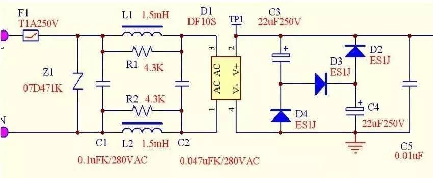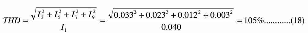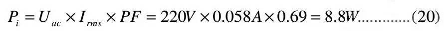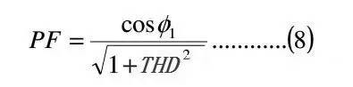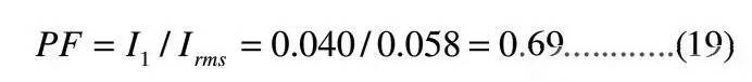 摘要 无论是从保护电力系统的安全还是从保护用电设备和人身的安全来看,严格控制并限定电流谐波含量,以减少谐波污染造成的危害已成为人们的共识。 1. 总谐波失真THD与功率因数 PF 的关系 市面上很多的 LED 驱动电源,其输入电路采用简单的桥式整流器和电解电容器的整流 滤波电路,见图 1. ![]() 图1 该电路只有在输入交流电压的峰值附近,整流二极管才出现导通,因此其导通角θ比 较小,大约为 60°左右,致使输入电流波形为尖状脉冲,脉宽约为 3ms,是半个周期(10ms) 的 1/3.输入电压及电流波形如图 2 所示。由此可见,造成 LED 电源输入电流畸变的根本原 因是使用了直流滤波电解电容器的容性负载所致。 ![]() 对于 LED 驱动电源输入电流产生畸变的非正弦波,须用傅里叶(Fourier)级数描述。 根据傅里叶变换原理,瞬时输入电流可表为: ![]() 每一个电流谐波,通常会有一个正弦或余弦周期,n 次谐波电流有效值 In 可用下式计算: ![]() 输入总电流有效值 ![]() 上式根号中,I1 为基波电流有效值,其余的 I2,3,分别代表 2,3,… n 次谐波电流有效值。 用基波电流百分比表示的电流总谐波含量叫总谐波失真(THD) ,总谐波含量反映了波形的 畸变特性,因此也叫总谐波畸变率。定义为 ![]() 根据功率因数 PF 的定义,功率因数 PF 是指交流输入的有功功率 P 与输入视在功率 S 之比值,即 ![]() 其中, 为输入电源电压; U cosΦ1 叫相移因数, 它反映了基波电流 i1 与电压 u 的相位关系, Φ1 是基波相移角;输入基波电流有效值 I1 与输入总电流有效值 Irms 的百分比即 K=I1 / Irms 叫输入电流失真系数。上式表明,在 LED 驱动电源等非线性的开关电源电路中,功率 因数 PF 不仅与基波电流 i1 电压 u 之间的相位有关,而且还与输入电流失真系数 K 有关。 将式(6)代入式(7) ,则功率因数 PF 与总谐波失真 THD 有如下关系: ![]() 上式说明,在相移因数 cosΦ1 不变时,降低总谐波失真 THD,可以提高功率因数 PF;反之 也能说明, PF 越高则 THD 越小。 例如,通过计算,当相移角 Φ1=0 时,THD=30% @ PF=0.9578;THD=10% @ PF=0.9950. 2. 谐波测量与分析为了很好地分析如图 1 所示的 LED 驱动电源的谐 波含量,介绍一种使用示波器测量输 入电流的方法。先在电源输入回路串接一个 10-20W 或以上的大功率电阻如 R=10 OHM,通电 后测量大功率电阻上两端的电压波形,由于纯功率电阻上两端的电压与电流始终是同相位, 因此电阻上的脉冲电压波形亦即代表了输入电流的脉冲波形,但数值大小不同。由波形显 示可知,其脉冲电流 i(t)与图 2 的电流波形是一致的,见图3. ![]() 图3 此电流脉冲波近似于余弦脉冲波,因此可用余弦脉冲函数表为: ![]() 为了计算方便,现取正弦交流输入电压的一个周期 T:-5ms≤t≤15ms,即 T=20ms.由此, 一个周期为 20ms 的输入脉冲电流的表达式如下: ![]() 上式中,余弦脉冲电流幅值 Im 可由示波器显示的电压幅值与电阻值之比而算出,即 Im=Um/R,已知测得 Um=1.5V,则 Im=1.5/10=0.15A.图中脉冲宽度τ=3ms. 对于图 2 所示的输入电流波形,是关于前后半波上下对称的奇次对称波,因而只含有 a1、a3、a5……等奇次谐波分量,而直流分量 a0 和偶次谐波分量 a2、a4、a6……均为零。 将式(10)的输入电流波形进行傅里叶分解得: ![]() 根据积分公式: ![]() 并且有 a=π/τ,b=nω,ω=2π/T,因此有: ![]() 当 n=1 时将 T=20ms、τ=3ms、Im=0.15A 代入上式,得 ![]() 计算得基波电流幅值 a1=I1m=0.06×(0.608+0.327)=0.056(A) 。 同理,分别计算 a3,a5,a7,a9 次谐波幅值,如表 1 所示。 ![]() 表 1.谐波幅值表 根据表 1,LED 驱动电源的输入电流的傅里叶级数为: ![]() 根据谐波幅值 Inm 与谐波有效值 In 的关系,谐波有效值: ![]() 由式(16) ,则分别计算各次谐波电流有效值如下(单位 A) : I1=0.040,I3=0.033,I5=0.023,I7=0.012,I9=0.003. 根据式(5) ,LED 驱动电源的输入总电流有效值: ![]() 将表 1 数据代入式(17) ,则输入总电流有效值 Irms=0.058(A) 。实际中,这个输入电 流值可用测量真有效值的万用表测得或由功率计的输入电流显示屏读取。 根据式(6)计算总谐波失真: ![]() 根据表 1 的谐波幅值数据,并以基波(一次谐波)分量 100%为基准,制定谐波电流幅值频谱图(忽略高于 9 次以上的谐波)见图 4. ![]() 图4 现按式(7)计算功率因数 PF,当基波相移角 Φ1 为零, cosΦ1=1 则有: ![]() 实测 PF=0.65,二者基本一致。实际 LED 驱动电源的输入功率: ![]() 谐波的危害 由以上分析计算可知,这类 LED 驱动电源输入电流谐波含量高,对于这类装置如功率 不大和少量的使用,其危害性也许不一定会表现出来,然而若成千上万的大量密集地使用, 它所产生的谐波电流总量会严重污染整个供电系统和其他用电用户,同时也使电网电压波 形发生畸变。理论和实践证明,过大的电流谐波会产生以下危害: A. 能使配电设施如电力变压器和发电机、感性负载设备如电动机等磁性材料的铁芯损 耗 Pkz 得到额外的增加,即增加了由于谐波电流引起的磁滞损耗 Ph 分量和涡流损耗 Pc 分 量,使其过热而损坏,见式(21) ,其中 fn 是各次谐波电流频率。 ![]() B. 谐波电流通过功率补偿设备的电力电容器,图5是电容器的等效图。由图5可见,当由谐波电流引起的容抗与寄生电感引起的感抗相等时形成谐振,产生强大的谐波电流, 从而导致电力电容器过流或过压损坏。 ![]() 图5 C. 能对线路上的继电保护、仪器仪表、自动控制、电子通讯、卫星导航以及计算机系统产生强烈的干扰,从而引起误动作、出现噪声