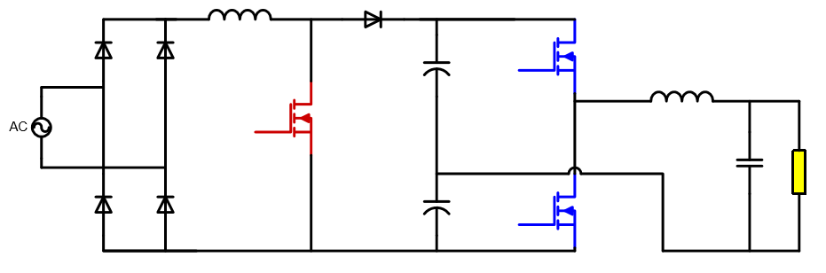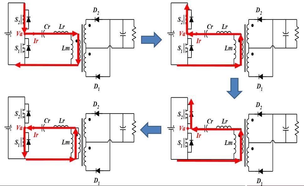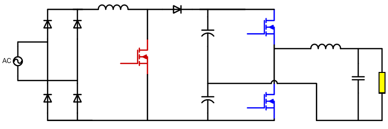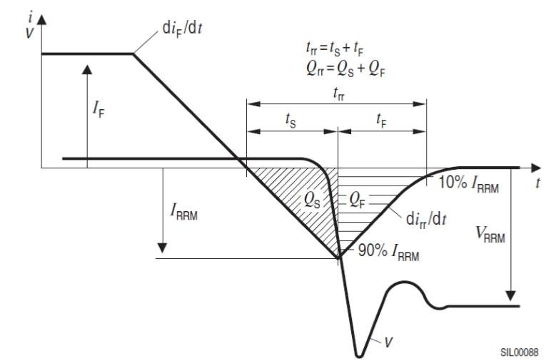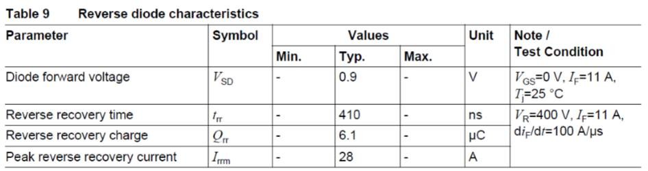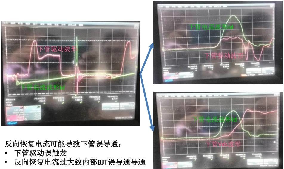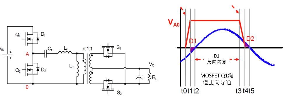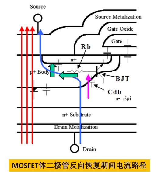 MOSFET体二极管特性 寄生二极管由来 是由生产工艺造成的,大功率MOS管漏极从硅片底部引出,就会有这个寄生二极管。小功率MOS管例如集成芯片中的MOS管是平面结构,漏极引出方向是从硅片的上面也就是与源极等同一方向,没有这个二极管。模拟电路书里讲得就是小功率MOS管的结构,所以没有这个二极管。但D极和衬底之间都存在寄生二极管,如果是单个晶体管,衬底当然接S极,因此自然在DS之间有二极管。如果在IC里面,NMOS衬底接最低的电压,PMOS衬底接最高电压,不一定和S极相连,所以DS之间不一定有寄生二极管。 寄生二极管作用: 当电路中产生很大的瞬间反向电流时,可以通过这个二极管导出来,不至于击穿这个MOS管。(起到保护MOS管的作用) 沟槽Trench型N沟道增强型功率MOSFET的结构如下图所示,在N-epi外延层上扩散形成P基区,然后通过刻蚀技术形成深度超过P基区的沟槽,在沟槽壁上热氧化生成栅氧化层,再用多晶硅填充沟槽,利用自对准工艺形成N+源区,背面的N+substrate为漏区,在栅极加上一定正电压后,沟槽壁侧的P基区反型,形成垂直沟道。 由下图中的结构可以看到,P基区和N-epi形成了一个PN结,即MOSFET的寄生体二极管。 ![]() MOSFET剖面结构 ![]() 体二极管主要参数 ![]() 二极管特性测试电路 ![]() 二极管恢复曲线 ![]() MOSFET体二极管反向恢复过程波形 ![]() ![]() ![]() MOSFET体二极管应用场合 全桥逆变电路 ![]() 三相桥电路 ![]() LLC半桥谐振电路ZVS ![]() 移相全桥PSFB ZVS ![]() HID照明(ZVS) ![]() MOSFET体二极管反向恢复 ![]() LLC半桥谐振变换器 ![]() LLC电压增益 ![]() LLC变换器 ZVS状态下模态切换 ![]() LLC变换器工作波形(ZVS模式) ![]() LLC变换器工作波形(ZVS模式,轻载) ![]() LLC变换器 ZCS状态下模态切换 ![]() LLC变换器工作波形 ![]() LLC变换器输出短路状态1波形 ![]() LLC变换器输出短路状态2波形 ![]() LLC启动过程 - 二极管反向恢复 ![]() LLC启动过程 - 二极管反向恢复 ![]() HID照明电源(带载切换成开路) ![]() HID照明电源启动过程 ![]() HID照明电源(低于谐振频率工作波形) ![]() HID照明电源实测波形 ![]() 点击左下角“阅读原文”与四万电源工程师一起学习电源知识