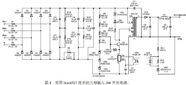 一、反激式电源中的铁氧体磁放大器 对于两个输出端都提供实际功率(5 V 2 A 和 12 V 3 A,两者都可实现± 5%调节)的双路输出反激式电源来说,当电压达到 12 V 时会进入零负载状态,而无法在 5%限度内进行调节。线性稳压器是一个可实行的解决方案,但由于价格昂贵且会降低效率,仍不是理想的解决方案。我们建议的解决方案是在 12 V 输出端使用一个磁放大器,即便是反激式拓扑结构也可使用。 为了降低成本,建议使用铁氧体磁放大器。然而,铁氧体磁放大器的控制电路与传统的矩形磁滞回线材料(高磁导率材料)的控制电路有所不用。铁氧体的控制电路(D1 和 Q1)可吸收电流以便维持输出端供电。该电路已经过全面测试。变压器绕组设计为 5 V 和 13 V 输出。该电路在实现 12 V 输出± 5%调节的同时,甚至还可以达到低于 1 W 的输入功率(5 V 300 mW和12V零负载) ![]() 二、使用现有的消弧电路提供过流保护 考虑一下 5 V 2 A 和 12 V 3 A 反激式电源。该电源的关键规范之一便是当 12 V 输出端达到空载或负载极轻时,对 5 V 输出端提供过功率保护(OPP)。这两个输出端都提出了± 5%的电压调节要求。 对于通常的解决方案来说,使用检测电阻会降低交叉稳压性能,并且保险丝的价格也不菲。而现在已经有了用于过压保护(OVP)的消弧电路。该电路能够同时满足 OPP 和稳压要求,使用部分消弧电路即可实现该功能。 从图 2 可以看出,R1 和 VR1 形成了一个 12 V 输出端有源假负载,这样可以在 12 V 输出端轻载时实现 12 V 电压调节。在 5 V 输出端处于过载情况下时,5 V 输出端上的电压将会下降。假负载会吸收大量电流。R1 上的电压下降可用来检测这一大量电流。Q1 导通并触发 OPP电路。 ![]() 三、有源并联稳压器与假负载 在线电压 AC 到低压 DC 的开关电源产品领域中,反激式是目前最流行的拓扑结构。这其中的一个主要原因是其独有的成本效益,只需向变压器次级添加额外的绕组即可提供多路输出电压。 通常,反馈来自对输出容差有最严格要求的输出端。然后,该输出端会定义所有其它次级绕组的每伏圈数。由于漏感效应的存在,输出端不能始终获得所需的输出电压交叉稳压,特别是在给定输出端因其它输出端满载而可能无负载或负载极轻的情况下更是如此。 可以使用后级稳压器或假负载来防止输出端电压在此类情况下升高。然而,由于后级稳压器或假负载会造成成本增加和效率降低,因而它们缺乏足够的吸引力,特别是在近年来对多种消费类应用中的空载和/或待机输入功耗的法规要求越来越严格的情况下,这一设计开始受到冷落。图 3中所示的有源并联稳压器不仅可以解决稳压问题,还能够最大限度地降低成本和效率影响。 ![]() 该电路的工作方式如下:两个输出端都处于稳压范围时,电阻分压器 R14 和 R13 会偏置三极管 Q5,进而使 Q4 和 Q1 保持在关断状态。在这样的工作条件下,流经 Q5 的电流便充当 5 V输出端很小的假负载。 5 V 输出端与 3.3 V 输出端的标准差异为 1.7 V。当负载要求从 3.3 V 输出端获得额外的电流,而从 5 V 输出端输出的负载电流并未等量增加时,其输出电压与 3.3 V 输出端的电压相比将会升高。由于电压差异约超过 100 mV,Q5 将偏置截止,从而导通 Q4 和 Q1 并允许电流从 5 V 输出端流到 3.3 V 输出端。该电流将降低 5 V 输出端的电压,进而缩小两个输出端之间的电压差异。 Q1 中的电流量由两个输出端的电压差异决定。因此,该电路可以使两个输出端均保持稳压,而不受其负载的影响,即使在 3.3 V 输出端满载而 5 V 输出端无负载这样最差的情况下,仍能保持稳压。设计中的 Q5 和 Q4 可以提供温度补偿,这是由于每个三极管中的 VBE 温度变化都可以彼此抵消。二极管 D8 和 D9 不是必需的器件,但可用于降低 Q1 中的功率耗散,从而无需在设计添加散热片。 该电路只对两个电压之间的相对差异作出反应,在满载和轻负载条件下基本不起作用。由于并联稳压器是从 5 V 输出端连接到 3.3 V 输出端,因此与接地的并联稳压器相比,该电路的有源耗散可以降低 66%。其结果是在满载时保持高效率,从轻负载到无负载的功耗保持较低水平。 四、采用 StackFET?的高压输入开关电源 使用三相交流电进行工作的工业设备常常需要一个可以为模拟和数字电路提供稳定低压直流电的辅助电源级。此类应用的范例包括工业传动器、UPS 系统和能量计。 此类电源的规格比现成的标准开关所需的规格要严格得多。不仅这些应用中的输入电压更高,而且为工业环境中的三相应用所设计的设备还必须容许非常宽的波动包括跌落时间延长、电涌以及一个或多个相的偶然丢失。而且,此类辅助电源的指定输入电压范围可以达到57 VAC 至 580 VAC 之宽。 设计如此宽范围的开关电源可以说是一大挑战,主要在于高压 MOSFET 的成本较高以及传统的 PWM 控制环路的动态范围的限制。StackFET 技术允许组合使用不太昂贵的、额定电压为600V 的低压 MOSFET 和 Power Integrations 提供的集成电源控制器,这样便可设计出简单并能够在款输入电压范围内工作的开关电源。 ![]() 该电路的工作方式如下:电路的输入端电流可以来自三相三线或四线系统,甚至来自单相系统。三相整流器由二极管 D1-D8 构成。电阻 R1-R4 可以提供浪涌电流限制。如果使用可熔电阻,这些电阻便可在故障期间安全断开,无需单独配备保险丝。pi 滤波器由 C5、C6、C7、C8 和 L1 构成,