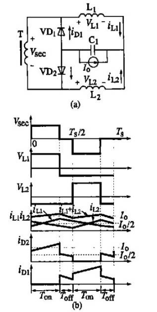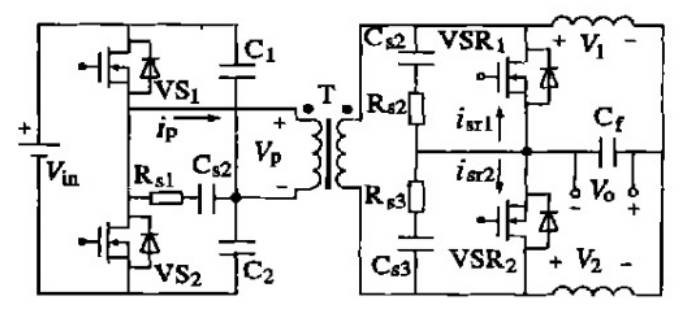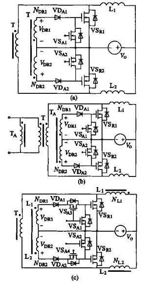1 引言 目前对低压大电流DC/ DC 变换器的研究方兴未艾。如何选择合适的拓扑电路是其首要任务。从拓扑、应用方面系统地论述了低压大电流技术近期的发展,阐述了各种拓扑电路的特点及用途并进行了分析比较。同时,详细地介绍了其关键的同步整流技术及其各种驱动方法。 随着电子技术的迅速发展,以及各种微处理器、IC 芯片和数字信号处理器的普及应用,对低压大电流输出的低压变换器的研究与应用成为日益重要的课题。在低电压输出的情况下,一般的二极管整流很难达到较高效率,需采用同步整流技术,这就使得同步整流成为低压大电流技术中的关键技术。另外,如何选择合适的拓扑,使变换器的性能最优化,也是一个极其重要的问题。 首先分别从变压器的初级和次级对各种基本拓扑进行分析比较,分别得出初级和次级适合于低压大电流的优化拓扑,然后进行组合,列举了3 种典型的拓扑,最后对优化的组合作进一步的比较分析。 2 基本拓扑及其优缺点分析以变压器为界,此类变换器的初级拓扑可从其所能传送的功率以及拓扑结构的复杂程度等方面进行分析。在提高低压大电流变换器的效率中显得尤为重要的是其次级的拓扑。本文首先从提高效率的角度对其进行分析,然后综合考虑其结构复杂性和驱动方式等的问题。 2. 1 变压器初级拓扑的优选 相对于升压型变换器来说,降压型变换器更加适用于低压大电流变换器。其变压器初级的基本拓扑主要可用正激式、反激式、推挽式、半桥式和全桥式等5 种。但是,其中的反激式变换器显然不适合低压大电流的要求,因为它的输出纹波较大,变压器漏感引起较大的电压尖峰,功率不大(150W 以下) ,变换器效率不高,因而只能在电压和负载调整率要求不高的场合使用。 2. 2 变压器次级拓扑的优选 2. 2. 1 同步整流技术基本原理 同步整流技术旨在实现同步整流管栅极和源极之间的驱动信号与同步整流管漏极和源极之间开关同步。理想的同步整流技术可使同步整流管起到和整流二极管同样的作用,即正向电压导通,反向电压关断。在输出为低电压大电流的情况下,整流二极管的使用会引起很大的能量损耗,大大地降低电源效率。而用于同步整流的低电压功率MOSFET 导通电阻非常小,正向导通压降很低,例如15A 时只有0. 1V ,因此用低电压功率MOSFET 代替整流二极管势在必行。 2. 2. 2 变压器次级3 种结构的比较 适用于低压大电流输出的变压器次级结构有3种:正激式结构、中心抽头式结构和倍流整流式结构(拓扑及其波形如图1 、2 、3 所示)。 ![]() 图1 正激式结构与波形图 ![]() 图2 中心抽头式结构与波形图 ![]() 图3 倍流整流式结构与波形图 正激式结构相对于其它两者结构最简单,而且适用于低压大电流的情况。与源于Buck 变换器的正激变换器类似,中心抽头式结构是应用于推挽、全桥或半桥等双端变压隔离器的Buck 型变换器。由于其输出滤波电感的电压频率是功率开关管的两倍,所以在同样条件下中心抽头式所需要的滤波电感值明显小于正激式的。 倍流整流结构不是源于Buck 变换器,但也起降压作用。其基本工作原理如图3 所示:当变压器的次级电压V sec为正时,VD1 关断,电感L1 的电流IL1增大并流经负载,VD2 和变压器次级形成回路,同时电感L2 的电流IL1减小,它流经负载和VD2 形成回路;当变压器次级电压V sec为负时,其过程也类似;而当变压器的次级电压为零时,则电感L1 和L2的电流分别流经VD1 和VD2 形成回路,即VD1 和VD2 同时导通。因此,虽然其滤波电感频率与其功率主开关的相同,但是由于两个滤波电感的纹波电流互相抵消了一部分( i11 + i12) ,其输出滤波电容的纹波电流减小了,因此在倍流型结构中所需要的滤波电容比正激式的小得多。 由图1b 可以看出,在每个开关周期内正激式结构的整流管的总导通损耗相当于输出滤波电感电流一个周期内流过一个整流管的损耗;在中心抽头或者倍流型结构中,由于双端变换器的变压器次级电压在功率开关管的死区内为零,所以其两个整流管在死区时间内同时导通,两个整流管中流过的电流均为零,如图2b 和图3b 所示,因此,在功率开关管的关断时间内,整流管的总损耗就大大减少了。 由图2a 和图3a 的对比可知,中心抽头型和倍流型从元件个数和结构的复杂性都是差不多的,但在大电流的情况下,倍流型次级结构的性能更好。 可从以下几点来说明: ①倍流型结构的电感电流和变压器次级的电流只是中心抽头型结构电流的一半,因而其导通损耗比中心抽头的要小; ②倍流结构使大电流的电路相互连接数目最少,这就简化了次级的布线,并因此减少了与布线有关的损耗; ③倍流结构中的变压器和滤波电感可以公用一个磁芯,简化了元件的包装和减小了体积。 2. 2. 3 变压器次级3 种结构的优选。 从以上分析可知,反激式的初级拓扑和中心抽头型的次级结构相对来说有很多不足。经过优选,适用于低压大电流的降压型初级拓扑有正激式、推挽式和桥式,而在次级整流拓扑中,正激式和倍流式两种更为适用于低压大电流。但是,推挽式和桥式等双端结构的初级拓扑显然不能和正激式的次级拓扑组合;而且,非对称的正激式初级结构虽然可以和倍流整流式的次级结构组合,但效果并不理想。 所以,可得出的优选拓扑组合是: ①初级正激式与次级正激式的组合; ②桥式与倍流式的组合; ③推挽式与倍流整流式的组