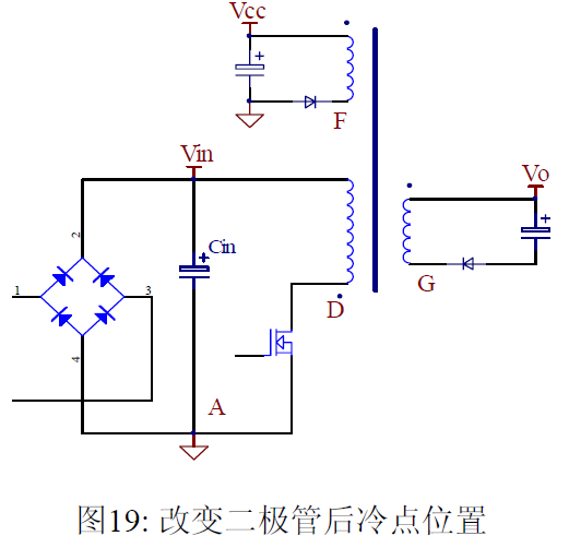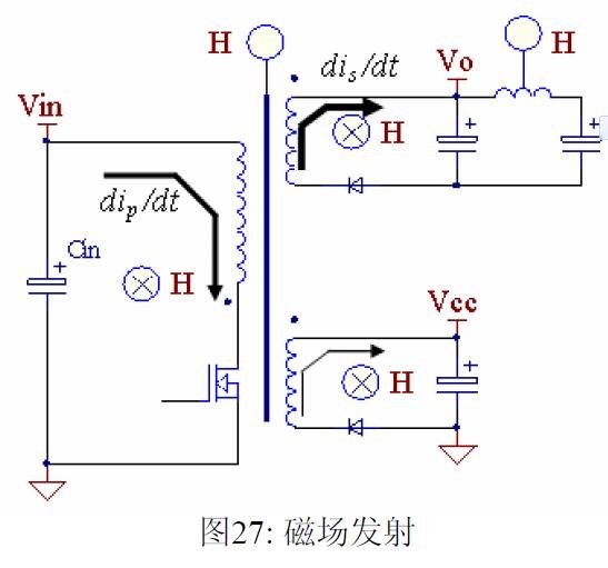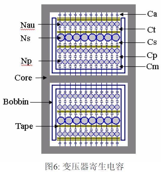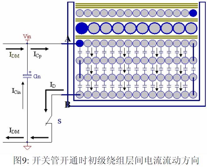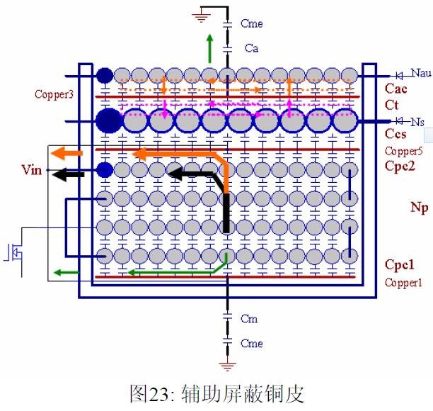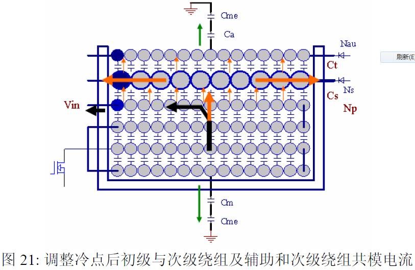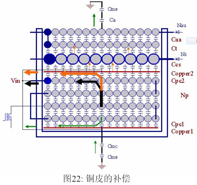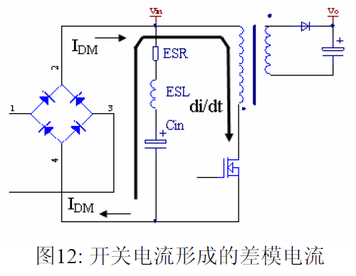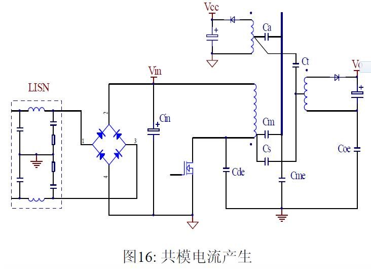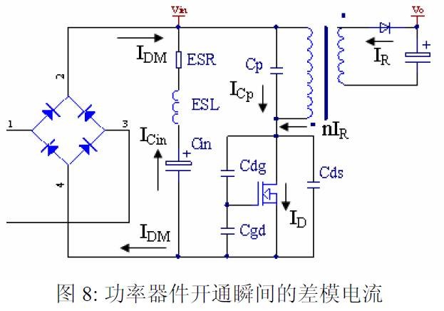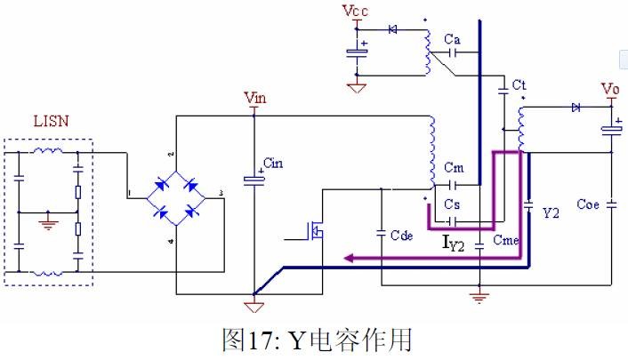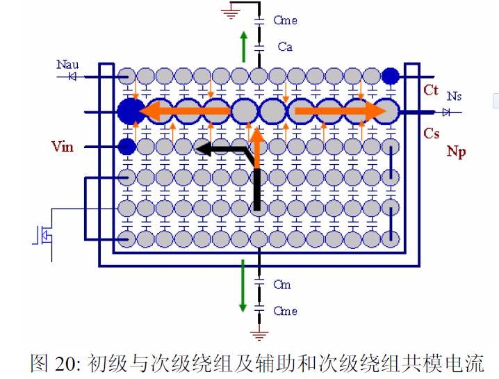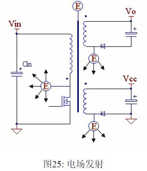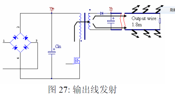 摘要 本文首先介绍了关于EMI 常规知识以及在开关电源中使用的各种缓冲吸引电路。然后介绍了在EMI中和传导相关的共模及差模电流产生的原理,静点动点的概念,并详细的说明了在变压器的结构中使用补偿设计的方法。最后介绍了EMI 的发射产生的机理和频率抖动及共模电感的设计。 目前,Y 电容广泛的应用在开关电源中,但Y 电容的存在使输入和输出线间产生漏电流。具有Y 电容的金属壳手机充电器会让使用者有触电的危险,因此一些手机制造商目前开始采用无Y 电容的充电器。然而摘除Y 电容对EMI 的设计带来了困难。具有频抖和频率调制的脉宽调制器可以改善EMI 的性能,但不能绝对的保证充电器通过EMI 的测试,必须在电路和变压器结构上进行改进,才能使充电器满足EMI 的标准。 1 EMI 常识在开关电源中,功率器件高频开通关断的操作导致电流和电压的快速的变化是产生EMI的主要原因。 在电路中的电感及寄生电感中快速的电流变化产生磁场从而产生较高的电压尖峰: ![]() 在电路中的电容及寄生电容中快速的电压变化产生电场从而产生较高的电流尖峰: ![]() ![]() 磁场和电场的噪声与变化的电压和电流及耦合通道如寄生的电感和电容直接相关。直观的理解, 减小电压率du/dt和电流变化率di/dt及减小相应的杂散电感和电容值可以减小由于上述磁场和电场产生的噪声,从而减小EMI干扰。 1.1 减小电压率du/dt和电流变化率di/dt 减小电压率du/dt和电流变化率di/dt可以通过以下的方法来实现:改变栅极的电阻值和增加缓冲吸引电路,如图2和图3所示。增加栅极的电阻值可以降低开通时功率器件的电压变化率。 ![]() 图3中,基本的RCD箝位电路用于抑止由于变压器的初级漏感在开关管关断过程中产生的电压尖峰。L1,L2 和L3可以降低高频的电流的变化率。L1和L2只对特定的频带起作用。L3对于工作于CCM模式才有效。 R1C1,R2C2,R3C3,R4C4 和 C5可以降低相应的功率器件两端的高频电压的变化率。 所有的这些缓冲吸引电路都需要消耗一定功率,产生附加的功率损耗,降低系统的效率;同时也增加元件的数日和PCB的尺寸及系统的成本,因此要根据实际的需要选择使用。 ![]() 1.2 减小寄生的电感和电容值 开关器件是噪声源之一,其内部引线的杂散电感及寄生电容也是噪声耦合的通道,但是由于这些参数是器件固有的特性,电子设计和应用工程师无法对它们进行优化。寄生电容包括漏源极电容和栅漏极的Miller电容。 变压器是另外一个噪声源,而初级次级的漏感及初级的层间电容、次级的层间电容、初级和次级之间的耦合电容则是噪声的通道。初级或次级的层间电容可以通过减小绕组的层数来降低,增大变压器骨架窗口的宽度可在减小绕组的层数。分离的绕组如初级采用三明治绕法可以减小初级的漏感,但由于增大了初级和次级的接触面积,因而增大了初级和次级的耦合电容。采用铜皮的Faraday屏蔽可以减小初级与次级间的耦合电容。Faraday屏蔽层绕在初级与次级之间,并且要接到初级或次级的静点如初级地和次级地。Faraday屏蔽层使初级和次级的耦合系数降低,从而增加了漏感。 2 传导干扰2.1 LISN EMI测试由传导干扰CE和辐射干扰RE组成,这两种噪声分开的检测和评价。对于不同的应用,不同的地区和国家都有相应的标准,这些标准对于频段的宽度和限制值都作了十分明确的定义。例如对于手机充电器属于FCC15/EN55022 CLASS B,传导干扰测量的频率范围为0.15MHz 到30MHz , 辐射干扰测量的频率范围为30MHz 到1GHz 。具体的内容可以参考相关的标准FCC,CIRPR和EN等。 传导干扰指在输入和输出线上流过的干扰噪声,测试的方法见图4所示。待测试的设备EUT通过阻抗匹配网络LISN(或人工电源网络)连接到干净的交流电源上。 ![]() LISN的作用如下: 1) 隔离待测试的设备EUT和交流输入电源,滤除由输入电源线引入的噪声及干扰。 2) EUT产生的干扰噪声依次通过LISN内部的高通滤波器和50 Ω电阻,在50 Ω电阻上得到相应的信号值送到接收机进行分析。 由图4可见:EUT放置在绝缘的测试台上,测试台下部装有接地良好的铁板,测试台及铁板的尺寸和安装都在特定的规定。 传导干扰来源于差模电流噪声和共模电流噪声,这两种类型的噪声干扰见图5所示。Y电容直接和传导干扰相关。 ![]() 差模电流在两根输入电源线间反方向流动,两者相互构成电流回路,即一根作为差模电流的源线,一根作为差模电流的回线。共模电流在两根输入电源线上同方向流动,它们分别与大地构成电流回路,即同时作为共模电流的源线或回线。 2.2 变压器模型 变压器所包含的寄生电容的模型见图6中所示。 ① Cp: 初级绕组的层间电容。 ② Coe: 输出线到大地的电容。 ③ Cme: 磁芯到大地的电容。 ④ Ca: 最外层绕组到磁芯的电容。 ⑤ Ct: 辅助绕组到次级绕组的电容。 ⑥Cs: 初级绕组到次级绕组的电容. ⑦ Cm: 最内层初级绕组到磁芯的电容。 ![]() 2.3 差模电流 差模电流噪声主要由功率开关器件的高频开关电流产生。 ① 功率器件开通 在功率器件开通瞬间存在电流的尖峰,图7所示。 ![]() 开通电流尖峰由三部分组成: (1) 变压器初级绕组的层间电容充电电流。 (2) MOSFET漏源极电容的放电电流。 (3) 工作在CCM模式的输出二极管的反向恢复电流。 开通电流尖峰不能通过输入滤波的直流电解电容旁路,因为输入滤波的直流电解电容有等效的串联电感ESL和电阻ESR,这
