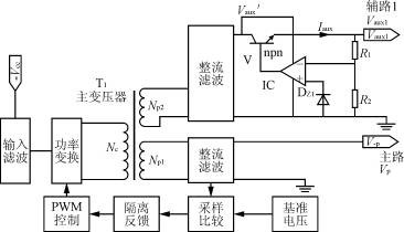 1、引言 对现代电子系统,即便是最简单的由单片机和单一I/O接口电路所组成的电子系统来讲,其电源电压一般也要由+5V,±15V或±12V等多路组成,而对较复杂的电子系统来讲,实际用到的电源电压就更多了。目前主要由下述诸多电压组合而成:+3.3V,+5V,±15V,±12V,-5V,±9V,+18V,+24V、+27V、±60V、+135V、+300V、-200V、+600V、+1800V、+3000V、+5000V(包括一个系统中需求多个上述相同电压供电电源)等。不同的电子系统,不仅对上述各种电压组合有严格的要求,而且对这些电源电压的诸多电特性也有较严格的要求,如电压精度,电压的负载能力(输出电流),电压的纹波和噪声,起动延迟,上升时间,恢复时间,电压过冲,断电延迟时间,跨步负载响应,跨步线性响应,交叉调整率,交叉干扰等。 2、多路输出电源对于电源应用者来讲,一般都希望其所选择的电源产品为“傻瓜型”的,即所选择的电源电压只要负载不超过电源最大值,无论系统的各路负载特性如何变化,而各路电源电压依然精确无误。仅就这一点来讲,目前绝大多数的多路输出电源是不尽人意的。为了更进一步说明多路输出电源的特性,首先从图1所示多路输出开关电源框图讲起。 从图1可以看到,真正形成闭环控制的只有主电路Vp,其它Vaux1、Vaux2等辅电路都处在失控之中。从控制理论可知,只有Vp无论输入、输出如何变动(包括电压变动,负载变动等),在闭环的反馈控制作用下都能保证相当高的精度(一般优于0.5%),也就是说Vp在很大程度上只取决于基准电压和采样比例。对Vaux1,Vaux2而言,其精度主要依赖以下几个方面: 1)T1主变器的匝比,这里主要取决于Np1:Np2或Np1:Np3 2)辅助电路的负载情况。 3)主电路的负载情况。 注:如果以上3点设定后,输入电压的变动对辅电路的影响已经很有限了。 ![]() 图1多路输出开关电源框图 ![]() 图2 测试仪表及设备连接 ![]() 图3辅助电路加一个线性稳压调节器 在以上3点中,作为一个具体的开关电源变换器,主变压器匝比已经设定,所以影响辅助电路输出电压精度最大的因素为主电路和辅电路的负载情况。在开关电源产品中,有专门的技术指标说明和规范电源的这一特性,即就是交叉负载调整率。为了更好地讲述这一问题,先将交叉负载调整率的测量和计算方法讲述如下。 2.1电源变换器多路输出交叉负载调整率测量与计算步骤 1)测试仪表及设备连接如图2所示。 2)调节被测电源变换器的输入电压为标称值,合上开关S1、S2…Sn,调节被测电源变换器各路输出电流为额定值,测量第j路的输出电压Uj,用同样的方法测量其它各路输出电压。 3)调节第j路以外的各路输出负载电流为最小值,测量第j路的输出电压ULj。 4)按式(1)计算第j路的交叉负载调整率SIL。 ![]() 式中:ΔUj为当其它各路负载电流为最小值时,Uj与该路输出电压ULj之差的绝对值; Uj为各路输出电流为额定值时,第j路的输出电压。 根据上面的测试及计算方法可以将交叉负载调整率理解为:所有其它输出电路负载跨步变(100%-0%时)对该路输出电压精度影响的百分比。 2.2多路输出开关电源 由图1原理所构成的实际开关电源,主控电路仅反馈主输出电压,其它辅助电路完全放开。此时假设主、辅电路的功率比为1:1。从实际测量得主电路交叉负载调整率优于0.2%,而辅电路的交叉负载调整率大于50%。无论开关电源设计者还是应用者对大于50%的交叉负载调整率都将是不能接受的。如何降低辅电路交叉负载调整率,最直接的想法就是给辅助电路加一个线性稳压调节器(包括三端稳压器,低压差三端稳压器)如图3所示。 从图3可知,由于引入了线性稳压调节器V,所以在辅路上附加了一部分功率损耗,功率损耗为P=(Vaux′-Vaux1)Iaux,而要使辅电路的交叉负载调整率小,就必须有意识地增大线性调整器的电压差(Vaux′-Vaux1),即就是要有意识增大Vaux′,其带来的缺点就是增加了电源的功率损耗,降低了电源的效率。 以图1及图3原理为基础设计和应用电源时,应注意的原则为: 1)主电路实际使用的电流最小应为最大满输出电流的30%; 2)主电路电压精度应优于0.5%; 3)辅电路功率最好小于主电路功率的50%; 4)辅电路交叉负载调整率不大于10%。 2.3改进型多路输出开关电源 在很多应用场合中,要求2路输出的功率基本相当,比如±12V/0.5A,±15V/1A。我们通过多年的实践,设计了如图4所示的电路,能较好地达到提高交叉负载调整率的目的。 图4电路设计思想的核心有以下2点。 1)将正负2路输出滤波电感L1、L2绕制在同一磁芯上,采用双线并绕的方法,从而保证L1、L2电感量完全相同。并注意实际接入线路时的相位(差模方法)关系,这种滤波电感的连接方法使2路输出电流的变化量相互感应,在一定程度上较大地改善了2路输出的交叉负载调整率。 2)从图4可以看到,采样比较器Rs1、Rs2不像图1那样接到主电路Vp上,而是直接跨接到正负电源的输出端上,并且逻辑“地”不是电源的输出地,而是以负电压输出端作为采样比较和基准电压的逻辑“地”电位。这样采样误差将同时反映出正、负2路输出的电压精度变化,对正、负2路同样都存在有反馈作用,能在很大程度上改进2路输出的交叉负载调整率。以±15V/1A电源为例,采用图4的电路设计,实测得的2路交叉负载调整率优于2%。 ![]() 图4改进型2路输出电路 ![]() 图5路电源设计方案 以图4原理为基础设计和应用电源时,应注意的原则为: 1)2路最好为对称输出(功率对称,电压对称),无明显的