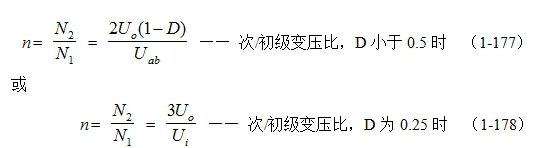 (连载41)半桥式开关电源变压器参数的计算 (连载01)开关电源的基本工作原理 (连载02)串联式开关电源输出电压滤波电路 (连载03)串联式开关电源储能滤波电感的计算 (连载04)串联式开关电源储能滤波电容的计算(2) (连载05)反转式串联开关电源 (连载06)反转式串联开关电源储能电感的计算 (连载07)反转式串联开关电源储能滤波电容的计算 (连载08)并联式开关电源的工作原理 (连载09)并联式开关电源输出电压滤波电路 (连载10)并联开关电源储能电感的计算 (连载11)单激式变压器开关电源 (连载12)单激式变压器开关电源工作原理 (连载13)正激式变压器开关电源 (连载14)正激式变压器开关电源的优缺点 (连载15)正激式变压器开关电源电路参数的计算 (连载16)正激式开关电源变压器参数的计算 (连载17)正激式开关电源变压器初、次级线圈匝数比的计算 (连载18)反激式变压器开关电源part1 (连载19)反激式变压器开关电源part2 (连载20)开关电源电路的过渡过程part1 (连载21)开关电源电路的过渡过程part2 (连载22)反激式变压器开关电源电路参数计算 (连载23)反激式开关电源变压器参数的计算 (连载24)反激式开关电源变压器初级线圈电感量的计算 (连载25)反激式变压器开关电源的优缺点 (连载26)双激式变压器开关电源part1 (连载27)双激式变压器开关电源part2 (连载28)整流输出推挽式变压器开关电源 (连载29)推挽式变压器开关电源储能滤波电感、电容参数的计算 (连载30)推挽式变压器开关电源储能滤波电容参数的计算 (连载31)推挽式开关电源变压器参数的计算 (连载32)推挽式开关电源的优缺点 (连载33)半桥式变压器开关电源 (连载34)交流输出半桥式变压器开关电源part1 (连载35)交流输出半桥式变压器开关电源part2 (连载36)交流输出单电容半桥式变压器开关电源part1 (连载37)交流输出单电容半桥式变压器开关电源part2 (连载38)单电容半桥式变压器开关电源输出电压 (连载39)整流输出半桥式变压器开关电源 (连载40)半桥式开关电源储能滤波电感、电容参数的计算 1-8-2-5.半桥式开关电源变压器参数的计算 半桥式变压器开关电源的工作原理与推挽式变压器开关电源的工作原理是非常接近的,只是变压器的激励方式与工作电源的接入方式有点不同;因此,用于计算推挽式变压器开关电源变压器初级线圈N1绕组匝数的数学表达式,只需稍微修改就可以用于半桥式变压器开关电源变压器初级线圈N1绕组匝数的计算。 A)半桥式开关电源变压器初级线圈匝数的计算 半桥式变压器开关电源与推挽式开关电源一样,也属于双激式开关电源,因此用于半桥式开关电源的变压器铁心的磁感应强度B,可从负的最大值-Bm,变化到正的最大值+Bm,并且变压器铁心可以不用留气隙。半桥式开关电源变压器的计算方法与前面推挽式开关电源变压器的计算方法基本相同,只是直接加到变压器初级线圈两端的电压仅等于输入电压Ui的二分之一。根据推挽式开关电源变压器初级线圈匝数计算公式(1-150)和(1-151)式: ![]() 设直接加到半桥式开关电源变压器初级线圈两端的电压为Uab,且Uab =Ui/2 ,则上面(1-150)和(1-151)式可以改写为: ![]() 上面(1-174)和(1-175)式就是计算半桥式开关电源变压器初级线圈N1绕组匝数的公式。式中,N1为变压器初级线圈N1绕组的最少匝数,S为变压器铁心的导磁面积(单位:平方厘米),Bm为变压器铁心的最大磁感应强度(单位:高斯);Uab为加到变压器初级线圈N1绕组两端的电压,Uab =Ui/2 ,Ui为开关电源的工作电压,单位为伏;τ = Ton,为控制开关的接通时间,简称脉冲宽度,或电源开关管导通时间的宽度(单位:秒); F为工作频率,单位为赫芝,一般双激式开关电源变压器工作于正、反激输出的情况下,其伏秒容量必须相等,因此,可以直接用工作频率来计算变压器初级线圈N1绕组的匝数;F和τ取值要预留20%左右的余量。式中的指数是统一单位用的,选用不同单位,指数的值也不一样,这里选用CGS单位制,即:长度为厘米(cm),磁感应强度为高斯(Gs),磁通单位为麦克斯韦(Mx)。 B)交流输出半桥式开关电源变压器初、次级线圈匝数比的计算 半桥式变压器开关电源如果用于DC/AC或AC/AC逆变电源,即把直流逆变成交流,或把交流整流成直流后再逆变成交流,这种逆变电源一般输出电压都不需要调整,因此电路相对比较简单,工作效率很高。请参考图1-36、图1-38、图1-39(图片见连载35)。 用于逆变的半桥式变压器开关电源一般输出电压uo都是占空比等于0.5的方波,由于方波的波形系数(有效值与半波平均值之比)等于1,因此,方波的有效值Uo与半波平均值Upa相等,并且方波的幅值Up与半波平均值Upa也相等。所以,只要知道输出电压的半波平均值就可以知道有效值,再根据半波平均值,就可以求得半桥式开关电源变压器初、次级线圈匝数比。 根据前面分析,半桥式变压器开关电源的输出电压uo,主要由开关电源变压器次级线圈输出的正激电压来决定。因此,根据(1-158)、(1-159)、(1-161)等式其中一式就可以出半桥式变压器开关电源的输出电压的半波平均值。由此求得半桥式逆变开关电源变压器初、次级线圈匝数比: n =N2/N1 =2Uo/Ui = 2Upa/Ui 次/初级变压比,D = 0.5时 (1-176) (1-176)式就是计算半桥式逆变开关电源变压器初、次级线圈匝数比的公式。式中,N1为变压器初级线圈N1绕组的匝数,N2为变压器次级线圈的匝数,Uo输出电压的有效值,Ui为直流输入电压,Upa输出电压的半波平均