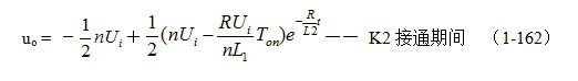 (连载34)交流输出半桥式变压器开关电源part1 (连载01)开关电源的基本工作原理 (连载02)串联式开关电源输出电压滤波电路 (连载03)串联式开关电源储能滤波电感的计算 (连载04)串联式开关电源储能滤波电容的计算(2) (连载05)反转式串联开关电源 (连载06)反转式串联开关电源储能电感的计算 (连载07)反转式串联开关电源储能滤波电容的计算 (连载08)并联式开关电源的工作原理 (连载09)并联式开关电源输出电压滤波电路 (连载10)并联开关电源储能电感的计算 (连载11)单激式变压器开关电源 (连载12)单激式变压器开关电源工作原理 (连载13)正激式变压器开关电源 (连载14)正激式变压器开关电源的优缺点 (连载15)正激式变压器开关电源电路参数的计算 (连载16)正激式开关电源变压器参数的计算 (连载17)正激式开关电源变压器初、次级线圈匝数比的计算 (连载18)反激式变压器开关电源part1 (连载19)反激式变压器开关电源part2 (连载20)开关电源电路的过渡过程part1 (连载21)开关电源电路的过渡过程part2 (连载22)反激式变压器开关电源电路参数计算 (连载23)反激式开关电源变压器参数的计算 (连载24)反激式开关电源变压器初级线圈电感量的计算 (连载25)反激式变压器开关电源的优缺点 (连载26)双激式变压器开关电源part1 (连载27)双激式变压器开关电源part2 (连载28)整流输出推挽式变压器开关电源 (连载29)推挽式变压器开关电源储能滤波电感、电容参数的计算 (连载30)推挽式变压器开关电源储能滤波电容参数的计算 (连载31)推挽式开关电源变压器参数的计算 (连载32)推挽式开关电源的优缺点 (连载33)半桥式变压器开关电源 根据电磁感应定律可以对变压器初级线圈N1绕组回路列出方程:e1 = N1*dΦ/dt =Uab K1接通期间 (1-156) 上式中,e1为变压器初级线圈产生的电动势, Uab为电源加于变压器初级线圈N1绕组两端的电压,Uab =Ui/2 , dΦ/dt为变压器铁心中磁通的变化率。这里我们假定电容器C1或C2两端的电压在K1接通期间基本保持不变,其两端电压正好等于输入电压Ui的二分之一。 同样,可以对变压器次级线圈N2绕组回路列出方程: e2 = N2 *dΦ/dt =(Up) K1接通期间 (1-157) 上式中,(Up)为开关变压器次级线圈N2绕组正激输出电压的幅值,用括弧匡住来表示。由于流过开关变压器初级线圈N1绕组的励磁电流或开关变压器铁心中的磁通是线性变化的,所以我们可认为开关变压器次级线圈N2绕组正激输出电压是一个方波。方波的幅值Up与半波平均值Upa以及有效值Uo三者完全相等。 根据(1-156)式和(1-157)式可以求得: (Up)= e2 =ne1 = nUi/2 K1接通期间 (1-158) (1-158)式就是半桥式变压器开关电源正激输出时的电压关系式。上式中,(Up)为开关变压器次级线圈N2绕组正激输出电压的幅值;Ui为开关电源变压器初级线圈N1绕组的输入电压;n为变压器次、初级线圈的变压比,即:开关变压器次级线圈输出电压与初级线圈输入电压之比,n也可以看成是开关变压器次级线圈N2绕组与初级线圈N1绕组的匝数比,即:n = N2/N1。 由此可知,在控制开关K1接通期间,半桥式变压器开关电源变压器次级输出的正激电压幅值只与输入电压和变压器的次/初级变压比有关系。 同理我们也可以求得,当控制开关K2接通时,开关变压器N2线圈绕组输出的正激电压幅值(Up-)为: (Up-)= -e2 =-ne1 = -nUi/2 K2接通期间 (1-159) 上式中的负号表示e2的符号与(1-158)中的符号相反,(Up-)表示与(Up)的极性相反,因为Uab =-Uba 。 这里还需指出,(1-158)式和(1-159)式列出的计算结果,并没有考虑控制开关K1或K2关断瞬间,励磁电流存储的能量产生反电动势的影响。当控制开关K1或K2关断瞬间,流过开关变压器初级线圈的励磁电流由最大值突然下降为零,使开关变压器铁心中的磁通量也要跟着产生变化;即:开关变压器的初、次级线圈中都会产生感应电动势,这种感应电动势是励磁电流存储于关变压器铁心中的磁能量产生的;这种感应电动势对于变压器次级线圈电压输出绕组来说,属于反激式输出。即:半桥式变压器开关电源同时存在正、反激电压输出。 反激式电压产生的原因是因为K1或K2接通瞬间变压器初级或次级线圈中的电流初始值不等于零,或磁通的初始值不等于零。 实际上,半桥式变压器开关电源的反激式输出电压部分是不能忽略的。半桥式变压器开关电源变压器次级线圈的输出电压应该同时包括两部分,正激输出电压和反激输出电压。 因此,图1-36中,当控制开关K1关断,K2接通瞬间,开关变压器次级线圈输出电压应该等于正激电压与反激电压之和。正激电压的计算可由(1-158)和(1-159)式给出,反激电压的计算可由(1-67)或(1-68)式给出。关于纯电阻负载反激式输出电压的计算,请参考前面《1-5-1.单激式变压器开关电源的工作原理》章节中的相关内容分析,这里不再赘述。 根据(1-67)式 ![]() 上式中,[uo] 表示开关变压器次级线圈N2绕组输出的反激式电压,[i2] 表示开关变压器次级线圈N2绕组输出反激式电压对负载R产生的电流。另外根据(1-159)式求得的结果,开关变压器次级线圈N2绕组产生的正激式输出电压为: (uo)=-ne1 = -nUi/2 K2接通期间 (1-161) 上面两式中,[uo] 表示开关变压器次级线圈N2绕组产生的反激式输出电压,(uo)表示开关变压器次级线圈N2绕组产生的正激式输出电压。因此,开关变压器次级线圈输出电压uo等于正激电压(uo)与反激电压[uo]之和,即: ![]() (1-162)式就是半桥式变压器开关电源在负载为纯电阻时,输