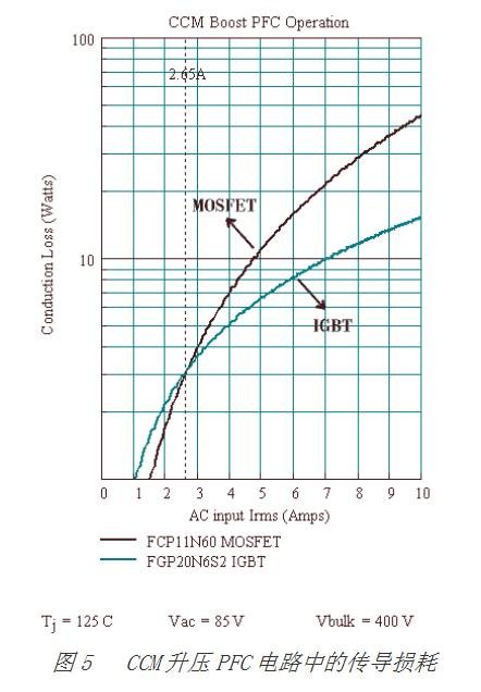 MOSFET和IGBT内部结构不同,决定了其应用领域的不同. 1,由于MOSFET的结构,通常它可以做到电流很大,可以到上KA,但是前提耐压能力没有IGBT强。 2,IGBT可以做很大功率,电流和电压都可以,就是一点频率不是太高,目前IGBT硬开关速度可以到100KHZ,那已经是不错了.不过相对于MOSFET的工作频率还是九牛一毛,MOSFET可以工作到几百KHZ,上MHZ,以至几十MHZ,射频领域的产品. 3,就其应用,根据其特点:MOSFET应用于开关电源,镇流器,高频感应加热,高频逆变焊机,通信电源等等高频电源领域;IGBT集中应用于焊机,逆变器,变频器,电镀电解电源,超音频感应加热等领域 开关电源 (Switch Mode Power Supply;SMPS) 的性能在很大程度上依赖于功率半导体器件的选择,即开关管和整流器。 虽然没有万全的方案来解决选择IGBT还是MOSFET的问题,但针对特定SMPS应用中的IGBT 和 MOSFET进行性能比较,确定关键参数的范围还是能起到一定的参考作用。 本文将对一些参数进行探讨,如硬开关和软开关ZVS (零电压转换) 拓扑中的开关损耗,并对电路和器件特性相关的三个主要功率开关损耗导通损耗、传导损耗和关断损耗进行描述。此外,还通过举例说明二极管的恢复特性是决定MOSFET 或 IGBT导通开关损耗的主要因素,讨论二极管恢复性能对于硬开关拓扑的影响。 导通损耗 除了IGBT的电压下降时间较长外,IGBT和功率MOSFET的导通特性十分类似。由基本的IGBT等效电路(见图1)可看出,完全调节PNP BJT集电极基极区的少数载流子所需的时间导致了导通电压拖尾(voltage tail)出现。 ![]() 这种延迟引起了类饱和 (Quasi-saturation) 效应,使集电极/发射极电压不能立即下降到其VCE(sat)值。这种效应也导致了在ZVS情况下,在负载电流从组合封装的反向并联二极管转换到 IGBT的集电极的瞬间,VCE电压会上升。IGBT产品规格书中列出的Eon能耗是每一转换周期Icollector与VCE乘积的时间积分,单位为焦耳,包含了与类饱和相关的其他损耗。其又分为两个Eon能量参数,Eon1和Eon2。Eon1是没有包括与硬开关二极管恢复损耗相关能耗的功率损耗;Eon2则包括了与二极管恢复相关的硬开关导通能耗,可通过恢复与IGBT组合封装的二极管相同的二极管来测量,典型的Eon2测试电路如图2所示。IGBT通过两个脉冲进行开关转换来测量Eon。第一个脉冲将增大电感电流以达致所需的测试电流,然后第二个脉冲会测量测试电流在二极管上恢复的Eon损耗。 ![]() 在硬开关导通的情况下,栅极驱动电压和阻抗以及整流二极管的恢复特性决定了Eon开关损耗。对于像传统CCM升压PFC电路来说,升压二极管恢复特性在Eon (导通) 能耗的控制中极为重要。除了选择具有最小Trr和QRR的升压二极管之外,确保该二极管拥有软恢复特性也非常重要。软化度 (Softness),即tb/ta比率,对开关器件产生的电气噪声和电压尖脉冲 (voltage spike) 有相当的影响。某些高速二极管在时间tb内,从IRM(REC)开始的电流下降速率(di/dt)很高,故会在电路寄生电感中产生高电压尖脉冲。这些电压尖脉冲会引起电磁干扰(EMI),并可能在二极管上导致过高的反向电压。 在硬开关电路中,如全桥和半桥拓扑中,与IGBT组合封装的是快恢复管或MOSFET体二极管,当对应的开关管导通时二极管有电流经过,因而二极管的恢复特性决定了Eon损耗。所以,选择具有快速体二极管恢复特性的MOSFET十分重要。不幸的是,MOSFET的寄生二极管或体二极管的恢复特性比业界目前使用的分立二极管要缓慢。因此,对于硬开关MOSFET应用而言,体二极管常常是决定SMPS工作频率的限制因素。 一般来说,IGBT组合封装二极管的选择要与其应用匹配,具有较低正向传导损耗的较慢型超快二极管与较慢的低VCE(sat)电机驱动IGBT组合封装在一起。相反地,软恢复超快二极管,可与高频SMPS2开关模式IGBT组合封装在一起。 除了选择正确的二极管外,设计人员还能够通过调节栅极驱动导通源阻抗来控制Eon损耗。降低驱动源阻抗将提高IGBT或MOSFET的导通di/dt及减小Eon损耗。Eon损耗和EMI需要折中,因为较高的di/dt 会导致电压尖脉冲、辐射和传导EMI增加。为选择正确的栅极驱动阻抗以满足导通di/dt 的需求,可能需要进行电路内部测试与验证,然后根据MOSFET转换曲线可以确定大概的值 (见图3)。 ![]() 假定在导通时,FET电流上升到10A,根据图3中25℃的那条曲线,为了达到10A的值,栅极电压必须从5.2V转换到6.7V,平均GFS为10A/(6.7V-5.2V)=6.7mΩ。 ![]() 公式1 获得所需导通di/dt的栅极驱动阻抗 把平均GFS值运用到公式1中,得到栅极驱动电压Vdrive=10V,所需的 di/dt=600A/μs,FCP11N60典型值VGS(avg)=6V,Ciss=1200pF;于是可以计算出导通栅极驱动阻抗为37Ω。由于在图3的曲线中瞬态GFS值是一条斜线,会在Eon期间出现变化,意味着di/dt也会变化。呈指数衰减的栅极驱动电流Vdrive和下降的Ciss作为VGS的函数也进入了该公式,表现具有令人惊讶的线性电流上升的总体效应。 同样的,IGBT也可以进行类似的栅极驱动导通阻抗计算,VGE(avg) 和 GFS可以通过IGBT的转换特性曲线来确定,并应用VGE(avg)下的CIES值代替Ciss。计算所得的IGBT导通栅极驱动阻抗为100Ω,该值比前面的37Ω高,表明IGBT GFS较高,而CIES较低。这里的关键之处在于,为了从MOSFET转换到IGBT,必须对栅极驱动电路进行调节。 传导损耗需谨慎 在比较额定值为600V的器件时,IGBT的传导损耗一般比相同芯片大小的600 V MOSFET少。这种比较应该是在集电极和漏极电流密度可明显感测,并在指明最差情况下的工作结温下