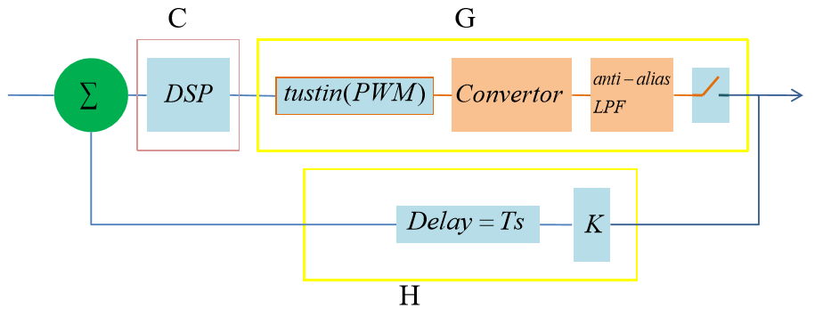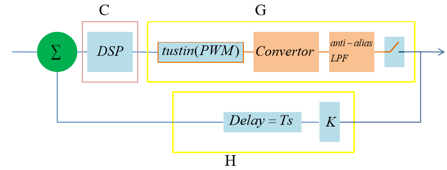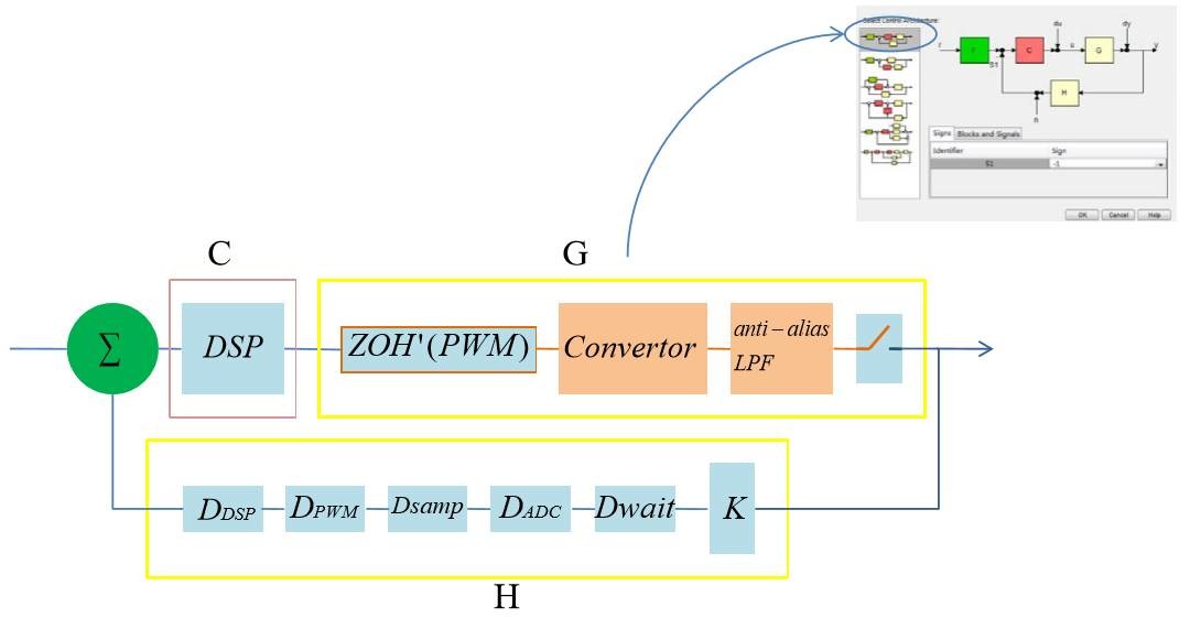 摘要 ■理解电源控制器 ■控制器的线性区设计 ■控制器的非线性区设计 ■控制器的饱和区设计 理解电源控制器 理解开关电源的非线性性质 ■开关电源是一个反馈环路,但这反馈环路有两点非常独特的性质: 环路中的转换器为一个非线性模块,即使使用了开关周期评价的方法,将 开关切换等价成了线性平均,其依然不是一个线性模块; 这个问题导致了开关电源的2个特点:一是非线性,二是存在开关噪声。 后面会详细的讨论这2个特点。 系统会饱和,严格来说,这并不是开关电源独有的问题,但是开关电源的 饱和会有灾难性的后果,因此必须仔细的避开饱和区域。 比如电感电流过大后,会导致磁芯饱和,其结果是灾难性的,为了避开这个饱和 区域,必须对电感电流进行检测,一旦进入危险区,立即复位转换器。 深入理解开关电源的设计 ■一提到环路,很多人会条件反射的运用反馈,自控等理论来分析和设 计,但对开关电源来说不行,因为开关电源中的各个模块都有其非线 性的一面。 下图示出了转换器可能会位于的3个区域,为了方便,将非饱和区直接命名 为非线性区。 转换器如果处于饱和区,转换器会损坏,因此,必须禁止进入此区域,一个合理 的做法是在非线性区内临近饱和区的区域设置警告区域,一旦进入,立即重启转 换器。 非线性区域内的线性区是通过小信号等效得到的,需要控制器提供合理的偏置, 并且限制变量变化的幅度,才能使其能等效成线性区。 换一个角度理解开关电源 ■当开关电源处于稳态时,此时如果环路的变量的变化符合小信号假设, 那么可以认为系统处于线性区,此时可以利用线性系统的方法来设计。 ■当开关电源上电时,或者虽然在稳态,但环路变量的变化很大,不符 合小信号假设,那么此时系统处于非线性区,此时不能直接利用线性 系统的方法来设计。 非线性系统的设计方法不像线性系统那么成熟,流派很多,也不容易理解, 在本文档中将针对电源系统进行讨论。 ■无论如何,系统都不能进入饱和区,因此,饱和区的设计实际上就是 检测转换器中的关键变量,当变量值超阈值时,自动复位转换器。 控制器设计基本流程 ■控制器设计是整个开关电源设计的核心,下图示出了控制器设计的3个 任务:饱和区域处理,大信号设计和小信号设计。 ![]() 控制器的结构 ■根据前面的分析,可知控制器实际上包含3部分: DSP:当转换器处于线性区时,激活这部分工作; Nonlinear Ctrl:当转换器处于非线性区时,激活这部分工作,DSP将不响应 环路误差,完全听从于NLC; Guard:当转换器处于警告区时,激活这部分工作,完全接管DSP和PXM。 ![]() 数字电源控制器的设计 ■从前面的控制器结构可以看到,使用数字电路设计这一部分是非常方 便的。 数字电路的设计三要素:输入,输出,功能。 用前面的控制器结构模型,可以非常清晰的定义出这三要素。 ■如果使用模拟电路,势必难以割裂这三个部分,控制器的设计将变成 一个非常依赖经验和技巧的任务。 数字电源控制器的设计 ■目前找到的书籍和资料都只强调控制器在线性区工作的设计,而不强 调非线性区的设计。 ■这个误区的原因可能在于以往的控制器都用模拟电路实现,而模拟电 路是很难实现丰富的非线性控制的。如今使用数字控制后,非线性区 控制可以做得很好。 控制器的线性区设计 环路建模工具 ■环路建模工具就是matlab,通常的做法是建立M文件,然后在M文件中 输入各个模块的传递函数,利用matlab进行相乘(串联),连续转离 散,离散转离散等操作,得到高级环路模型。 高级环路模型是指将环路简化为几个基本模块后的结构,这些结构能被 matlab工具箱sisotool所支持。 下图为sisotool支持的所有结构: ![]() DSP设计工具 ■DSP参数确定可以使用matlab自带的sisotool工具,这个工具能够根据 要求得到传递函数。得到传递函数后,再将传递函数化为PID和LPF系 数。 ■因为我们采用的是平台化的控制方法,因此可以将传递函数通过特定 的公式转成PID和LPF系数。 电压控制环路 ■画出整个环路的模块,如下图: 其中K表示输出电压反馈时的缩放系数。 PWM和Convertor的本质可以理解为一个DA,或者将PWM视为DA,将 convertor视为输入模拟量(0-100%),输出模拟电压的一个装置。 ![]() 电压控制环路离散模型 ■为了使用sisotool,将电压控制环路画成如下的形式。 环路设计的工作就是使用Sisotool在已知G和H的情况下求C ![]() 采样频率和固有延 ■要将模拟模块处理成离散模块,首先要确定的就是采样频率,在这个 环路里面,唯一能作为标准采样频率的就是开关管的切换频率fs。 PWM的周期也为Ts。 固定采样频率后,所有的延迟都只能是Ts的整数倍。 ■此系统为LTI系统,可以将所有的延迟集中到一起,此时如果延迟不是 一个整Ts,必须人为加上延迟,凑够Ts的整数倍。 将延迟分离后,所有的模型都视为和其传递函数表达式是完全相同的: DSP,输入数据,0延迟立即输出数据,输入X[k-1],X[k],立即得到Y[k]。 忽略ADC的量化误差后,ADC变成一个理想采样开关+ZOH,这个ZOH制造了1/2 倍转换时间的延迟。 ★注意ADC的转换延迟并不是等于转换时间,而是等于1/2转换时间。 ![]() PWM和转换器的延迟 ■PWM和转换器合力完成如下工作: 在周期的起始,PWM接收占空比信号D,输出持续一个周期的PWM波形, 在这个周期的结束点,输出电压反映了上一个周期的电压+当前周期占空比 的影响。 ■由此可