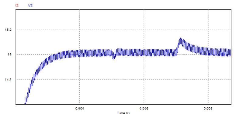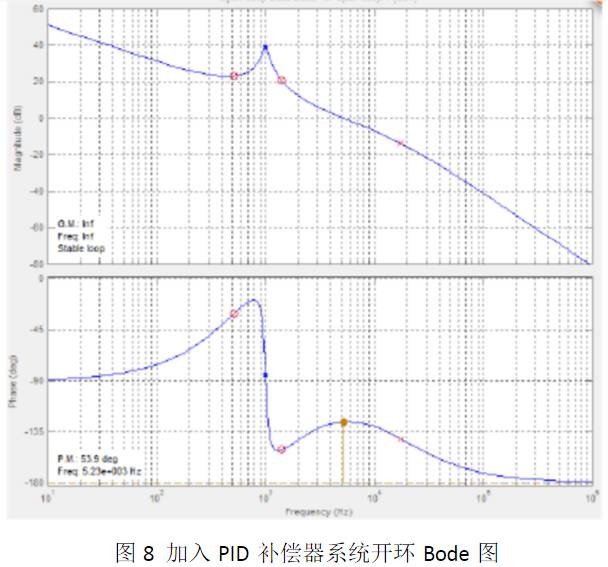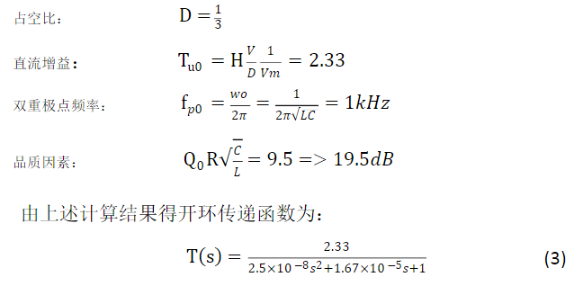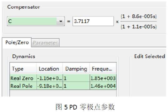 虚短和虚断的概念 设计指标 输入直流电压(VIN):28V; 输出电压(VO):15V; 输出电流(IIN):5A; 基准电压(Vref):5V; 开关频率(fs):100kHz; 采样网络传递函数H(s)=5/15=1/3; 三角载波峰峰值Vm=4V。 Buck变换器主电路如图1所示: ![]() 输出电压和输出电流仿真波形如图2: ![]() 原始系统设计 (1)设计电压采样网络。在设计开关调节系统时,为消除稳态误差,在低频段,尤其在直流频率点,开环传递函数的幅值要远大于1,即在直流频率点系统为深度负反馈系统。对于深度负反馈系统,参考电压与输出电压之比等于电压采样网络的传递函数,即 ![]() (2)绘制原始系统的Bode图。加在PWM的锯齿波信号峰峰值为Vm=4V,采用小信号模型分析,给出Buck变换器传递函数T s 为: ![]() 交流小信号模型中电路参数计算如下: ![]() 根据原始系统的传递函数可以得到的波特图如图3所示 ![]() 从图3中可以看出穿越频率为fc=1.83kHz,相位裕度为ψm=4.74,从表面上看,系统是稳定的,但是如果系统中的参数发生变化,系统可能会变得不稳定;另外穿越频率太低,系统的响应速度很慢。所以,要设计一个合理的补偿网络是系统能够稳定工作。 补偿网络的设计(使用SISOTOOL确定参数) 原始系统主要问题是相位裕度太低、穿越频率太低。改进的思路是在远低于穿越频率fc处,给补偿网络增加一个零点fZ,开环传递函数就会产生足够的超前相移,保证系统有足够的裕量;在大于零点频率的附近增加一个极点fP,并且为了克服稳态误差大的缺点,可以加入倒置零点fL,为此可以采用如图4所示的PID补偿网络。 ![]() 根据电路写出的PID补偿网络的传递函数为: ![]() 在此我们通过使用Matlab中SISOTOOL工具来设计调节器参数,可得: ![]() 首先确定PD调节器的参数,按设计要求拖动添加零点与极点,所得参数如图5 ![]() 加入PD补偿器之后的开环Bode图,相频裕度为52度,穿越频率5KHz,如图6所示: ![]() 然后加入倒置零点,设计PID参数,如图7所示 ![]() 加入PID之后,低频段的增益抬高,稳态误差减小,如图8 ![]() 假设补偿网络中C1=1μF,依据前面的方法计算后,选用R1=94,R2=393,R3=12,C2=0.8uF。 由图8可以看出,补偿后,fc=5KHz,相位裕度ψm=52,高频段f>fp,补偿后的系统回路增益在fc处提升至0dB,且以-40dB/dec的斜率下降,能够有效地抑制高频干扰。 系统仿真 图9为PID补偿的Buck变化器系统Psim仿真图 ![]() 图9 PID补偿的Buck变化器系统Psim仿真图 变换器仿真结果如图10所示 ![]() 验证加入扰动影响 如图11,系统在0.005ms时加一个10%的电流扰动,即并联一个约30欧姆的电阻;在0.007ms时加一个2V的电压扰动。 ![]() 仿真结果: 如果系统在突加10%负载电流扰动时,输出电压约有0.04V的波动,恢复时间仅需100μs; 突加2V电压扰动时,输出电压约有0.1V的波动,恢复时间仅需1ms; ![]() ![]() 因此,我们可以知道采用PID补偿的变换器具有良好的动态响应和控制精度。
