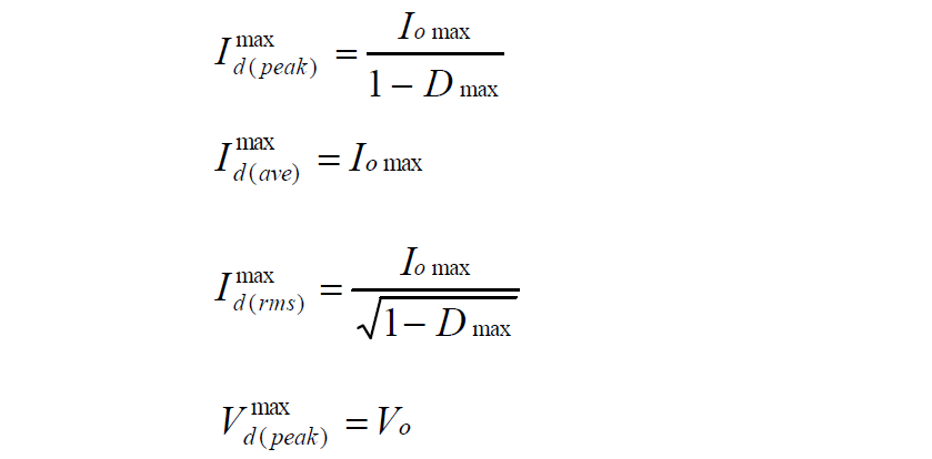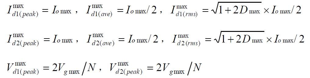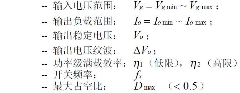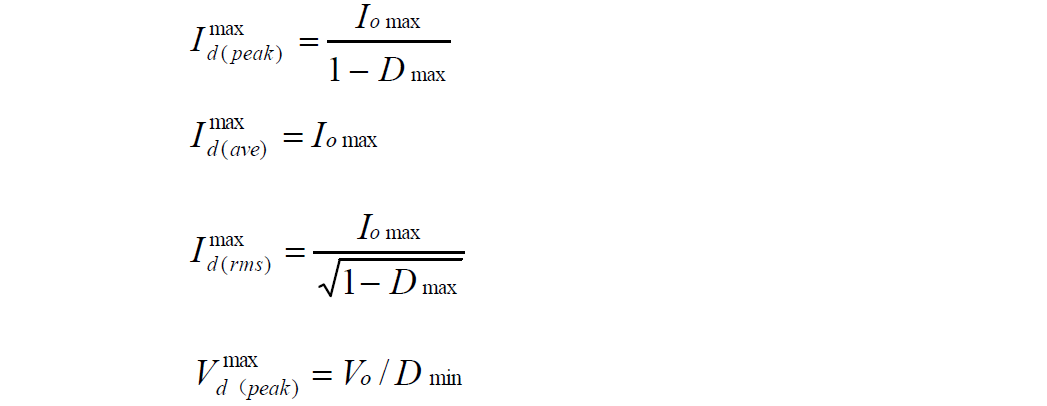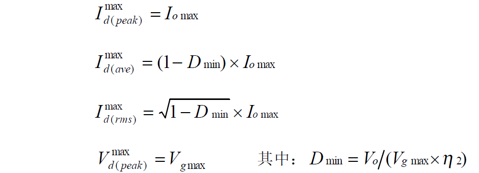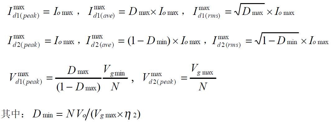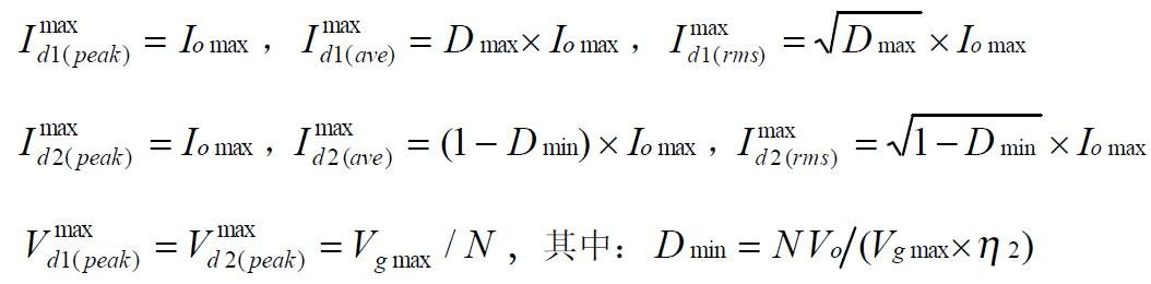 Buck 变换器的功率器件设计公式 (1):Buck 变换器的电路图: ![]() (2):Buck 变换器的主要稳态规格: ![]() (3):功率器件的稳态应力: -- 有源开关 S: ![]() -- 无源开关 D: ![]() 上述公式是稳态工作时,功率器件上的电压、电流应力。选择功率器件时,其电压耐量可放一个合适的余量(保证最坏情况下的电压峰值不超过此值),电流耐量则得按器件的结温降额要求决定、它与外部散热条件和器件的通态电阻、通态压降、结电容、反向恢复、结到壳的热阻等密切相关,是功率器件热设计的内容,将在以后的栏目中介绍。 Boost 变换器的功率器件设计公式 (1):Boost 变换器的电路图:![]() ![]() -- 有源开关 S: ![]() -- 无源开关 D: ![]() 上述公式是稳态工作时,功率器件上的电压、电流应力。选择功率器件时,其电压耐量可放一个合适的余量(保证最坏情况下的电压峰值不超过此值),电流耐量则得按器件的结温降额要求决定、它与外部散热条件和器件的通态电阻、通态压降、结电容、反向恢复、结到壳的热阻等密切相关,是功率器件热设计的内容,将在以后的栏目中介绍。 Buckboost 变换器的功率器件设计公式 (1):Buckboost 变换器的电路图:![]() (2):Buckboost 变换器的主要稳态规格: ![]() (3):功率器件的稳态应力: -- 有源开关 S: ![]() -- 无源开关 D: ![]() 上述公式是稳态工作时,功率器件上的电压、电流应力。选择功率器件时,其电压耐量可放一个合适的余量(保证最坏情况下的电压峰值不超过此值),电流耐量则得按器件的结温降额要求决定、它与外部散热条件和器件的通态电阻、通态压降、结电容、反向恢复、结到壳的热阻等密切相关,是功率器件热设计的内容,将在以后的栏目中介绍。 三绕组去磁正激变换器的功率器件设计公式(1):三绕组去磁正激变换器的电路图:![]() ![]() -- 有源开关 S: ![]() -- 无源开关 D1,D2: ![]() 上述公式是稳态工作时,功率器件上的电压、电流应力。选择功率器件时,其电压耐量可放一个合适的余量(保证最坏情况下的电压峰值不超过此值),电流耐量则得按器件的结温降额要求决定、它与外部散热条件和器件的通态电阻、通态压降、结电容、反向恢复、结到壳的热阻等密切相关,是功率器件热设计的内容,将在以后的栏目中介绍。 二极管去磁双正激变换器的功率器件设计公式(1):二极管去磁双正激变换器的电路图:![]() ![]() -- 有源开关 S1,S2: ![]() -- 无源开关 D1,D2: ![]() 上述公式是稳态工作时,功率器件上的电压、电流应力。选择功率器件时,其电压耐量可放一个合适的余量(保证最坏情况下的电压峰值不超过此值),电流耐量则得按器件的结温降额要求决定、它与外部散热条件和器件的通态电阻、通态压降、结电容、反向恢复、结到壳的热阻等密切相关,是功率器件热设计的内容,将在以后的栏目中介绍。 谐准去磁正激变换器的功率器件设计公式(1):谐准去磁正激变换器的电路图:![]() ![]() (3):功率器件的稳态应力: -- 有源开关 S: ![]() -- 无源开关 D1,D2: ![]() 上述公式是稳态工作时,功率器件上的电压、电流应力。选择功率器件时,其电压耐量可放一个合适的余量(保证最坏情况下的电压峰值不超过此值),电流耐量则得按器件的结温降额要求决定、它与外部散热条件和器件的通态电阻、通态压降、结电容、反向恢复、结到壳的热阻等密切相关,是功率器件热设计的内容,将在以后的栏目中介绍。 有源去磁正激变换器的功率器件设计公式(1):有源去磁正激变换器的电路图:![]() ![]() -- 有源开关 S: ![]() -- 无源开关 D1,D2: ![]() 上述公式是稳态工作时,功率器件上的电压、电流应力。选择功率器件时,其电压耐量可放一个合适的余量(保证最坏情况下的电压峰值不超过此值),电流耐量则得按器件的结温降额要求决定、它与外部散热条件和器件的通态电阻、通态压降、结电容、反向恢复、结到壳的热阻等密切相关,是功率器件热设计的内容,将在以后的栏目中介绍。 对称驱动半桥变换器的功率器件设计公式(1):对称驱动半桥变换器的电路图:![]() ![]() -- 有源开关 S1,S2: ![]() -- 无源开关 D1,D2: ![]() 上述公式是稳态工作时,功率器件上的电压、电流应力。选择功率器件时,其电压耐量可放一个合适的余量(保证最坏情况下的电压峰值不超过此值),电流耐量则得按器件的结温降额要求决定、它与外部散热条件和器件的通态电阻、通态压降、结电容、反向恢复、结到壳的热阻等密切相关,是功率器件热设计的内容,将在以后的栏目中介绍。 对称驱动全桥变换器的功率器件设计公式(1):对称驱动全桥变换器的电路图:![]() ![]() -- 有源开关 S1(S3),S2(S4): ![]() -- 无源开关D1,D2: ![]() 上述公式是稳态工作时,功率器件上的电压、电流应力。选择功率器件时,其电压耐量可放一个合适的余量(保证最坏情况下的电压峰值不超过此值),电流耐量则得按器件的结温降额要求决定、它与外部散热条件和器件的通态电阻、通态压降、结电容、反向恢复、结到壳的热阻等密切相关,是功率器件热设计的内容,将在以后的栏目中介绍。 对称驱动推挽变换器的功率器件设计公式(1):对称驱动推挽变换器的电路图:![]() ![]() -- 有源开关 S1,S2: ![]() -- 无源开关 D1,D2: ![]() 上述公式是稳态工作时,功率器件上的电压、电流应力。选择功率器件时,其电压耐量可放一个合适的余量(保证最坏情况下的电压峰值不超过此值),电流耐量则得按器件