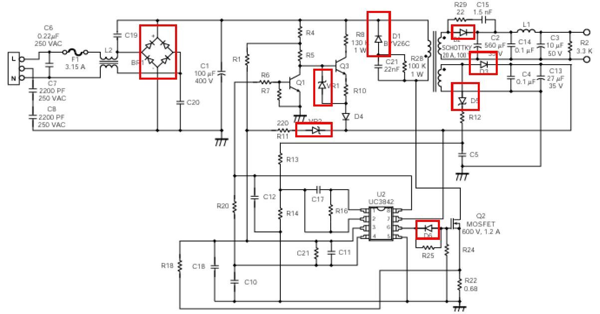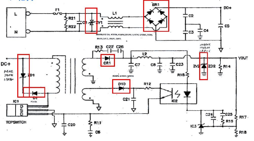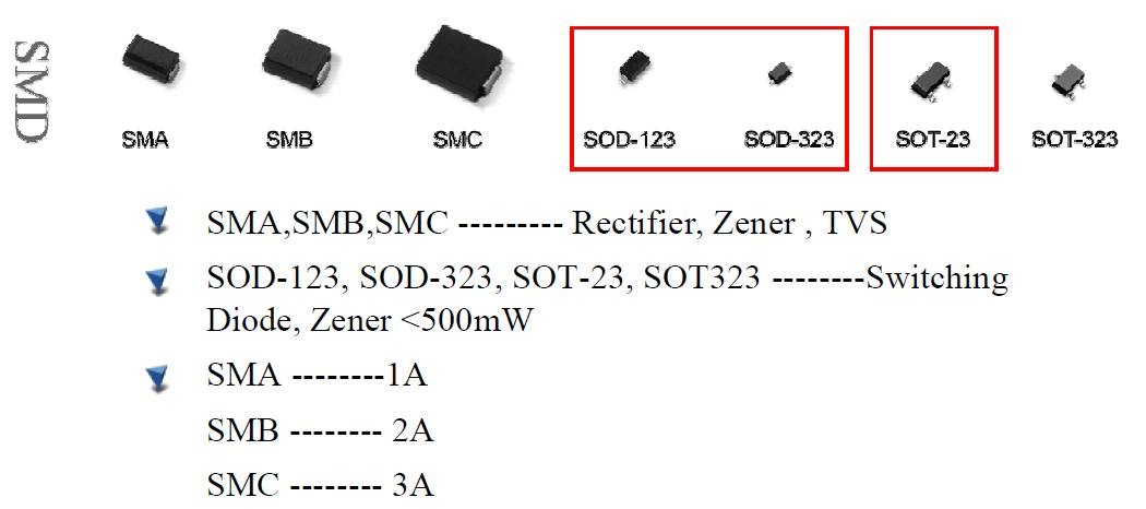 一,二极管的分类 ●二极管按其用途可分为: ★普通二极管和特殊二极管。 ●普通二极管: ★整流二极管、快速二极管、稳压二极管、检波二极管、开关二极管等。 ●特殊二极管: ★光二极管、变容二极管、隧道二极管、触发二极管等。 ★本文,主要介绍整流二极管、快速二极管和稳压二极管。 二,规格书的认识 ●整流二极管和快速二极管 ★整流二极管结构主要是平面接触型,其特点是允许通过的电流比较大,反向击穿电压比较高,但PN结电容比较大,一般广泛应用于处理频率不高的电路中。例如整流电路、箝位电路、保护电路等。整流二极管在使用中主要考虑的问题是:最大整流电流和最高反向工作电压应大于实际工作中的值。 ★快速二极管的工作原理与普通二极管是相同的,但由于普通二极管工作在开关状态下的反向恢复时间较长,一般大于500nS,不能适应高频开关电路的要求。快速二极管主要应用于高频整流电路、高频开关电源、高频阻容吸收电路、逆变电路等,其反向恢复时间可达10nS。快速二极管主要包括快速恢复二极管(简称FRD)和肖特基二极管(简称SBD) 。 ★整流二极管和快速二极管的常用规格比较如下: ![]() ●快速二极管 ★快恢复二极管(简称FRD)是一种具有开关特性好、反向恢复时间短等特点的半导体二极管,主要应用于开关电源、PWM脉宽调制器、变频器等电子电路中,作为高频整流二极管、续流二极管或阻尼二极管使用。 ★快恢复二极管在制造上采用掺金、单纯的扩散等工艺,可获得较高的开关速度,同时也能得到较高的耐压。快恢复二极管的内部结构与普通PN结二极管不同,它属于PIN结型二极管,即在P型硅材料与N型硅材料中间增加了基区I,构成PIN硅片。因基区很薄,反向恢复电荷很小,所以快恢复二极管的反向恢复时间较短,正向压降较低,反向击穿电压(耐压值)较高。 ★肖特基(Schottky)二极管也称肖特基势垒二极管(简称SBD),是由金属与半导体接触形成的势垒层为基础制成的二极管,其主要特点是正向导通压降小(约0.45V),反向恢复时间短和开关损耗小,是一种低功耗、超高速半导体器件,广泛应用于开关电源、变频器、驱动器等电路,作高频、低压、大电流整流二极管、续流二极管、保护二极管使用,或在微波通信等电路中作整流二极管、小信号检波二极管使用。 ★肖特基二极管在结构原理上与PN结二极管有很大区别,它的内部是由阳极金属(用钼或铝等材料制成的阻挡层)、二氧化硅(SiO2)电场消除材料、N-外延层(砷材料)、N型硅基片、N+阴极层及阴极金属等构成。在N型基片和阳极金属之间形成肖特基势垒。当在势垒两端加上正向偏压(阳极金属接电源正极,N型基片接电源负极)时,势垒层变窄,其内阻变小;反之,势垒两端加上反向偏压时,势垒层则变宽,其内阻变大。 ●整流二极管和快速二极管的规格 ★整流二极管和快速二极管的伏安特性曲线如下。 ![]() ●整流二极管和快速二极管的规格 ★以1N4001~1N4007为例介绍二极管的常见规格 ![]() ![]() ![]() ![]() ★最大差异点:Trr、Irr和Qrr(反向恢复电荷) ![]() ●稳压二极管 ★稳压二极管是利用PN结反向击穿特性所表现出的稳压性能制成的器件。稳压二极管也称齐纳二极管或反向击穿二极管,在电路中起稳定电压作用。它是利用二极管被反向击穿后,在一定反向电流范围内反向电压不随反向电流变化这一特点进行稳压的。稳压二极管通常由硅半导体材料采用合金法或扩散法制成。它既具有普通二极管的单向导电特性,又可工作于反向击穿状态。在反向电压较低时,稳压二极管截止;当反向电压达到一定数值时,反向电流突然增大,稳压二极管进入击穿区,此时即使反向电流在很大范围内变化时,稳压二极管两端的反向电压也能保持基本不变。但若反向电流增大到一定数值后,稳压二极管则会被彻底击穿而损坏。 ★稳压二极管的伏安特性曲线如下。 ![]() ★稳压二极管的通用规格 ![]() ★稳压二极管的具体规格 ![]() ![]() ★系列稳压二极管的电流特性比较 ![]() ★稳压二极管的温度特性和Derating ![]() 三,常见的零件封装 ●Axial ![]() ●SMD ![]() ●TO ![]() ●Bridge ![]() ●范例1 ![]() ●范例2 ![]() |