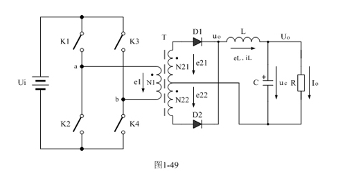 (连载44)整流输出全桥式变压器开关电源 (连载01)开关电源的基本工作原理 (连载02)串联式开关电源输出电压滤波电路 (连载03)串联式开关电源储能滤波电感的计算 (连载04)串联式开关电源储能滤波电容的计算(2) (连载05)反转式串联开关电源 (连载06)反转式串联开关电源储能电感的计算 (连载07)反转式串联开关电源储能滤波电容的计算 (连载08)并联式开关电源的工作原理 (连载09)并联式开关电源输出电压滤波电路 (连载10)并联开关电源储能电感的计算 (连载11)单激式变压器开关电源 (连载12)单激式变压器开关电源工作原理 (连载13)正激式变压器开关电源 (连载14)正激式变压器开关电源的优缺点 (连载15)正激式变压器开关电源电路参数的计算 (连载16)正激式开关电源变压器参数的计算 (连载17)正激式开关电源变压器初、次级线圈匝数比的计算 (连载18)反激式变压器开关电源part1 (连载19)反激式变压器开关电源part2 (连载20)开关电源电路的过渡过程part1 (连载21)开关电源电路的过渡过程part2 (连载22)反激式变压器开关电源电路参数计算 (连载23)反激式开关电源变压器参数的计算 (连载24)反激式开关电源变压器初级线圈电感量的计算 (连载25)反激式变压器开关电源的优缺点 (连载26)双激式变压器开关电源part1 (连载27)双激式变压器开关电源part2 (连载28)整流输出推挽式变压器开关电源 (连载29)推挽式变压器开关电源储能滤波电感、电容参数的计算 (连载30)推挽式变压器开关电源储能滤波电容参数的计算 (连载31)推挽式开关电源变压器参数的计算 (连载32)推挽式开关电源的优缺点 (连载33)半桥式变压器开关电源 (连载34)交流输出半桥式变压器开关电源part1 (连载35)交流输出半桥式变压器开关电源part2 (连载36)交流输出单电容半桥式变压器开关电源part1 (连载37)交流输出单电容半桥式变压器开关电源part2 (连载38)单电容半桥式变压器开关电源输出电压 (连载39)整流输出半桥式变压器开关电源 (连载40)半桥式开关电源储能滤波电感、电容参数的计算 (连载41)半桥式开关电源变压器参数的计算 (连载42)半桥式变压器开关电源的优缺点 (连载43)全桥式变压器开关电源 1-8-3-2.整流输出全桥式变压器开关电源 图1-48是全波整流输出全桥式变压器开关电源工作原理图;图1-49是输出电压可调的全桥式变压器开关电源工作原理图。 整流输出全桥式变压器开关电源的工作原理与整流输出推挽式变压器开关电源以及整流输出半桥式变压器开关电源的工作原理是非常接近的,只是变压器的激励方式与工作电源的接入方式有点不同。关于图1-48和图1-49等开关电源的详细工作原理,以及变压器、储能滤波原器件参数的计算,请自己参考前面有关章节内容的分析,这里不再准备赘述。 ![]() ![]() 1-8-3-3.全桥式开关电源储能滤波电感、电容参数的计算 全桥式开关电源储能滤波电感、电容参数的计算主要是针对如图1-49输出电压可调的全桥式变压器开关电源中的储能滤波电感、电容参数选择进行计算。实际上,图1-49输出电压可调的全桥式变压器开关电源中的储能滤波电感、电容参数选择方法,与图1-33输出电压可调的推挽式变压器开关电源的储能滤波电感、电容参数选择方法是基本相同的,因此,这里只列出计算储能滤波电感、电容参数的公式,对于详细分析请参考《1-8-1-3.推挽式变压器开关电源储能滤波电感、电容参数的计算》章节的内容。 A)全桥式开关电源储能滤波电感参数的计算 根据前面分析,以及由图1-35可以看出,输出电压可调的推挽式变压器开关电源的两个控制开关K1、K2的占空比必须小于0.5,开关电源电源才能正常工作;当要求输出电压可调范围为最大时,占空比最好取值为0.25。此分析结果对于全桥式开关电源同样有效。 当两个控制开关K1、K2的占空比取值均为0.25时,输出电压可调的推挽式变压器开关电源中的储能滤波电感L以及输出电压Uo的计算由(1-144)和(1-145)式决定,即: L ≥nUiT/12Io =nUi/12FIo D为0.25时 (1-144) Uo =2nUi/3 D为0.25时 (1-145) 上面(1-144)和(1-145)式既是计算输出电压可调的推挽式变压器开关电源储能滤波电感和滤波输出电压的表达式(D为0.25时),也是计算输出电压可调的全桥式变压器开关电源储能滤波电感和滤波输出电压的表达式(D为0.25时)。式中:Ui为全桥式变压器开关电源输入电压,Uo为全桥式变压器开关电源的输出电压,T为控制开关的工作周期,F为控制开关的工作频率,n为开关电源次级线圈N2绕组与初级线圈N1绕组的匝数比。 上面(1-144)和(1-145)式的计算结果,只给出了计算输出电压可调的全桥式变压器开关电源储能滤波电感L的中间值,或平均值,对于极端情况可以在平均值的计算结果上再乘以一个大于1的系数。 B)全桥式开关电源储能滤波电容参数的计算 根据前面分析,以及由图1-35可以看出,当两个控制开关K1、K2的占空比取值均为0.25时,输出电压可调的推挽式变压器开关电源中的储能滤波电容C参数的计算由(1-149)式决定,即: C >Io*T/ 8ΔUP-P D为0.25时 (1-149) (1-149)式中:Io是流过负载的电流,T为控制开关K1和K2的工作周期,ΔUP-P为输出电压的波纹电压。波纹电压ΔUP-P一般都取峰-峰值,所以波纹电压正好等于电容器充电或放电时的电压增量,即:ΔUP-P = 2ΔUc 。(1-149)式,虽然是计算输出电压可调的推挽式变压器开关电源储能滤波电容的公式(D = 0.25时),但对于输出电压可调的全桥式变压器开