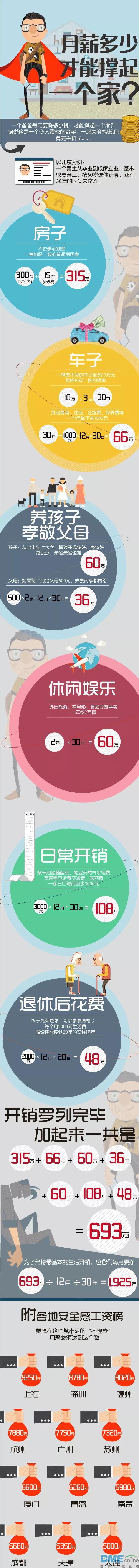 有人说:“中年以后的人,时常会觉得孤独,因为一睁开眼,周围都是要依靠他的人,却没有他可以依靠的人”。 身处中年的父亲们,或许是最为焦虑的一群人。上有父母需要赡养,下有子女读书要花钱,家庭、生活各项开支,忙忙碌碌,每个月的工资不少,日子不算紧巴巴,却也不敢丝毫放松。现在,最早一批的90后年近30,有许多也已为人父母。 此前有个话题很火,“爸爸月薪多少才能撑起一个家?” 1万?2万?5万?10万?其实,是否能撑起一个家,真的可以用月薪多少来衡量吗?这个话题值得深思。 爸爸月薪多少才能撑起一个家?有人就此做过一个计算: 以男子30岁结婚,60岁退休为例,在这30年中: 房子:二线城市1.5万/平方米为准,70平的二居室,装修20万,一共需要125万; 车子:10年一换,每辆车10万,需要30万,油钱、保养费、过路费等其余花费加在一起需要66万; 休闲娱乐,看电影、旅游每年2万,一共需要60万; 日常开销72万、孩子教育60万、孝敬父母36万…… 所有花销一共419万,平均到每个月,爸爸收入大概需要达到1.2万,才可以保证一个家庭较好地运行。 还是在没病没灾的前提下。 下面这张图对此也做出了解读,赶快对照一下… ![]() 爸爸月薪两万,撑起这个家的却是妻子 洗衣、做饭、清洁……看似简单的工作,实则耗费巨大的精力。 韩国综艺《同床异梦2》里的城南市市长李在明,幽默风趣,是大众眼中的成功人士。 但在生活中,更忙碌的却是妻子金惠景。 ![]() 每天早晨,妻子要早起准备早餐,食物要清淡、有营养、健康美味;等丈夫吃好饭,要为他准备出席活动穿戴的衣服,领带颜色与衬衣搭配效果如何,穿哪双鞋都需考虑。 碰上丈夫没有聚餐,早饭之后又得准备午饭,打扫房间、清洗衣服、被套,有时市长回到家,午饭还没做好。 好不容易午睡会儿,还得设个闹钟,早点起来拖地,以免市长到家吃不上晚饭。 这样的生活日复一日,每天变出花样的饭菜,干净整洁的家。打理一切的妈妈,并不会比在外忙碌的爸爸轻松。 家庭要有序运转,需要每个成员的努力Radall是美剧《This is Us》中的一个黑人小孩,学空手道时,教练为了让他得到精神上的支撑,叫爸爸Jack做俯卧撑,孩子趴在爸爸背上。 教练计数,爸爸跟着做,教练停下,爸爸还继续做着,只是为了告诉孩子,我是你的依靠。 ![]() 不仅如此,Jack对妻子的剖白也感动了许多人: “我遇见你的那天才真正知道,自己长大后想成为什么样的人,我想成为那个能让你开心的人,从今以后,我愿为你做满分加一的男人。不,为孩子做满分加一,为你做满分加二的男人。” 爸爸成为爸爸时,妻子也成了妈妈。 Jack妻子Rebecca会良言劝他戒酒,学着照顾黑皮肤的养子Radall,安慰因肥胖被孤立的女儿。 最好的家庭,是在有限的条件里,努力为对方创造着快乐。 情感的维系,比起金钱更需要时间工作总有牺牲,挣再多钱的父亲,如果不给家人陪伴,也不算优秀。 曾看过这样一个故事: 一位爸爸下班很晚回到家,累并且烦躁,进门发现五岁的儿子在等他。 “爸爸,我可以问你一个问题吗?” “当然可以,什么问题?” “你一个小时可以赚多少钱?” “这与你无关。假如你一定要知道,我一小时赚20美元。” 孩子得到答案,沉默几秒后,又问“爸爸,可以借我10美元吗?” 父亲很累,生气地把孩子赶回了房间。 一小时后,冷静下来的父亲走到孩子卧室,向孩子道歉,他猜想孩子可能只是想买自己喜欢的东西,才问他要钱。 “抱歉,我想我刚才对你太凶了,这是你要的十美元。” 孩子接过钱,向父亲道谢后从枕头下面拿出一些弄皱的钞票,整理好一起递给了爸爸,说“爸爸,我现在有二十美元了,我可以向你买一个小时的时间吗?明晚我想和你一起吃晚餐。” 孩子的思维很单纯,既然时间换来金钱,那么拿钱应该就可以换取父亲的时间。 “我很幸运,你和别人的爸爸不一样,没有任何人的爸爸能够总是去公园。”剧情片《I am Sam》里的这句台词,道出了很多孩子的心声。 ![]() 《I am Sam》电影截图 爸爸的陪伴,珍贵而稀有。 前两年杭州一学校三年级的家长会,家长收到一份特殊的成绩单。成绩单上是孩子给每位家长打的分。 在所有答卷中,爸爸的得分普遍比妈妈低,还有四位爸爸在及格线以下。四位爸爸中有三位都是因为工作忙,没时间陪孩子。 可能每位爸爸收入都不少,工资所得也尽数花在了家庭开销、孩子补习上。但残忍的是,钱不等于幸福感,孩子眼中,不陪伴的爸爸依旧不达标。 衡量一个家庭,面包足够重要,情感联系也必不可少。小孩子的眼里,离天空最近的地方是爸爸的肩膀。 撑起一个家,不该只以月薪多少来衡量。 《摔跤吧!爸爸》里面有一句扎心的台词:“你们的爸爸在跟全世界对抗,就是为了你们的未来。” 家从来不是靠爸爸一个人撑起来的,一个家庭需要所有人的付出,整体才胜于局部总和。 真正撑起一个家的未必是月薪两万,而是月薪两千依旧努力顾家的那个男人。