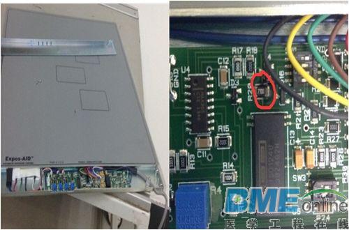 4、测量电离室的R20保险状态 将电离室卸下后,测量R20保险丝,处于导通状态,但是有一圈黑色明显烧灼痕迹,将电离室和KV板同时换掉。
