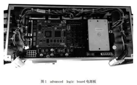 至此完全可以断定,球管部分的近端控制触摸屏和束光器上的条状显示屏黑屏故障就是那块advanced logic board电源板上有元器件烧坏。