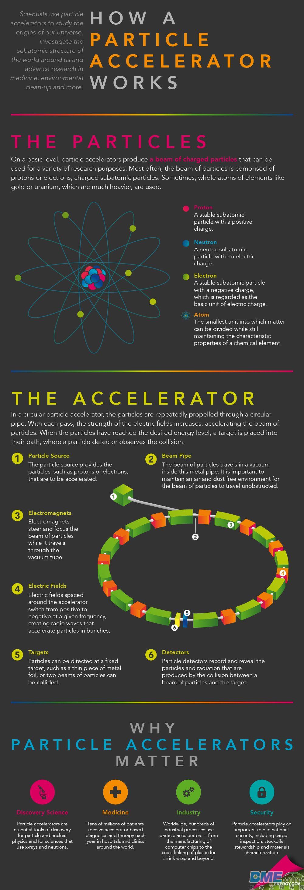 无论是医学或科学研究,粒子加速器几乎触及我们日常生活的每一个方面。自19世纪90年代阴极射线管早期以来,粒子加速器为科技创新做出了重要贡献。今天,全世界有超过30,000个粒子加速器在运行。 ![]() 什么是粒子加速器? 粒子加速器是一种将基本粒子(如电子或质子)加速到非常高能量的机器。在基本层面上,粒子加速器产生带电粒子束,可用于各种研究目的。粒子加速器有两种基本类型:线性加速器和圆形加速器。线性加速器沿着线性或直线束线推动粒子。圆形加速器推动圆形轨道周围的颗粒。线性加速器用于固定目标实验,而圆形加速器可用于碰撞梁和固定目标实验。 ![]() 粒子加速器如何运作? 粒子加速器使用电场来加速和增加粒子束的能量,粒子被磁场控制和聚焦。粒子源提供要加速的粒子,例如质子或电子。粒子束在金属梁管中的真空内行进。真空对于保持空气和无尘环境以使粒子束无阻碍地行进至关重要。当电磁铁穿过真空管时,电磁铁转向并聚焦粒子束。 在加速器周围间隔开的电场在给定频率下从正切换到负,产生无线电波,加速束中的粒子。颗粒可以被引导到固定的目标,例如薄的金属箔,或者两个颗粒束可以相撞。粒子探测器记录并揭示粒子束与目标之间碰撞产生的粒子和辐射。 粒子加速器在医疗领域的应用 每年有数千万患者在世界各地的医院和诊所接受基于加速器的诊断和治疗。粒子加速器在医学应用中有两个主要作用:用于医学诊断和治疗的放射性同位素的产生,以及用于医学治疗的电子束,质子和较重的带电粒子的来源。 放射性同位素的广泛半衰期及其不同的辐射类型允许针对特定应用进行优化。发射X射线,伽马射线或正电子的同位素可以用作诊断探针,仪器位于患者体外以对成像辐射分布进行成像,从而生物结构和流体运动或收缩(例如血流)。β射线(电子)和α粒子(氦核)的发射体将大部分能量沉积在靠近发射核的位置,并用作破坏癌组织的治疗剂。 外照射放射治疗已成为治疗癌症患者的一种非常有效的方法。现在绝大多数这些辐照都是用产生电子束和X射线的微波线性加速器进行的。过去50年来,加速器技术,诊断和治疗技术的发展极大地改善了临床结果。今天,全球有30个质子和三个碳离子束治疗中心在运作,许多新的中心正在运转。 能源部的国家实验室在这些技术的早期开发中发挥了至关重要的作用。洛斯阿拉莫斯国家实验室帮助开发了电子线性加速器,现在是外部束疗法的主力。Oak Ridge和Brookhaven国家实验室为同位素诊断和治疗提供了大量现有的专业知识。劳伦斯伯克利国家实验室率先使用质子,α粒子(氦原子核)和其他轻离子进行治疗和放射生物学。