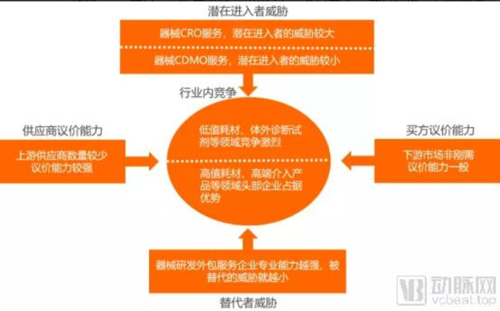 医疗器械研发外包服务企业专业能力越强,被替代的可能性就越小,议价能力就越大、竞争者也就越少。