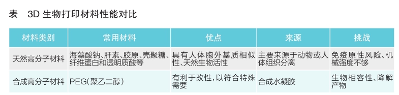 相比于普通3D打印,3D生物打印技术要求材料具有生物相容性,且能够提供目标组织的功能性。目前最常用的材料分为两大类:天然高分子材料和合成高分子材料(见表)。 干细胞是理想细胞材料